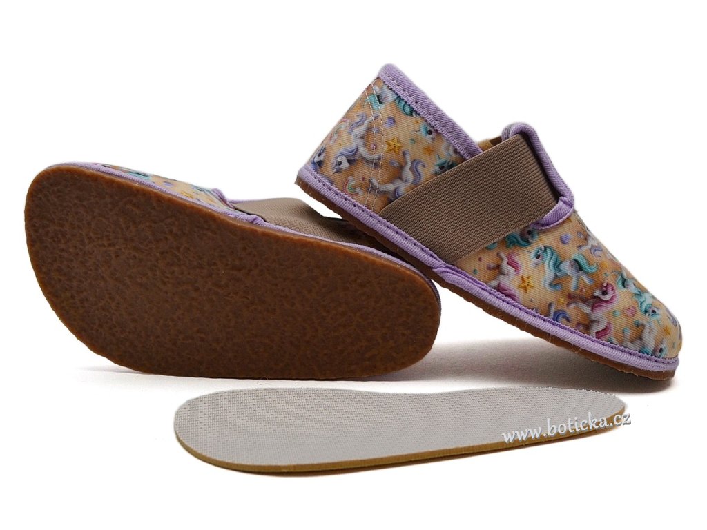 Barefoot Pegres se pyšní velkým prostorem pro dětské prstíky. Nejen dominantním palečkům a úzkým patám v nich bude skvěle. Papučky jsou ušity z vybraných látek. Jsou velmi měkké a mimořádně ohebné. Díky všem těmto vlastnostem se v nich děti cítí svobodně a bez omezení. Zapínání na suchý zip.