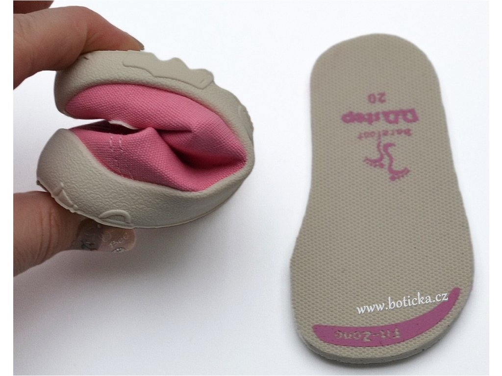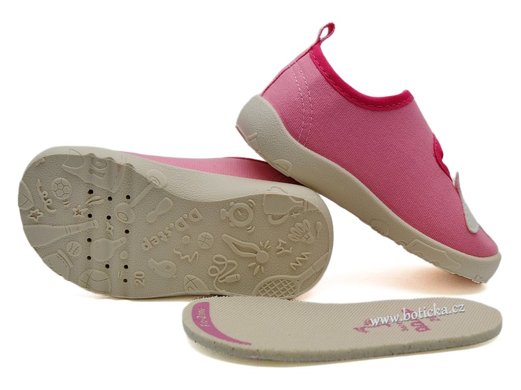 Lehké a ohebné textilní plátěnky / bačkůrky DDstep, s flexibilní podrážkou, vhodné i jako barefoot kompromis. Výhodou je vyjímatelná textilní stélka. Podešev obuvi D.D.Step 086 je lehká a ohebná a zajistí maximální vnímání povrchu. Botičky umožní zapojit při chůzi všechny svaly a šlachy chodidla, stejně jako při chůzi naboso, čímž přispívá ke zdravému vývoji chodidla. Nulový drop - žádný rozdíl ve výšce podešve mezi špičkou a patou. Opatek je jen velmi nepatrně zpevněný. Provětrávané do podešve.