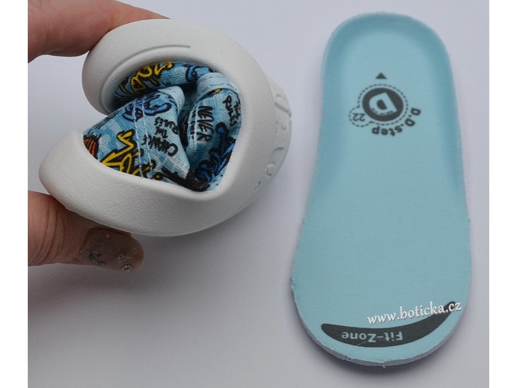 Lehké a prodyšné textilní plátěnky / bačkůrky DDstep, s flexibilní podrážkou. Výhodou je vyjímatelná textilní stélka a okopová špička, která chrání botku před rychlým opotřebením. Podešev je lehká a ohebná a zajistí maximální vnímání povrchu. . Opatek je jen velmi nepatrně zpevněný.