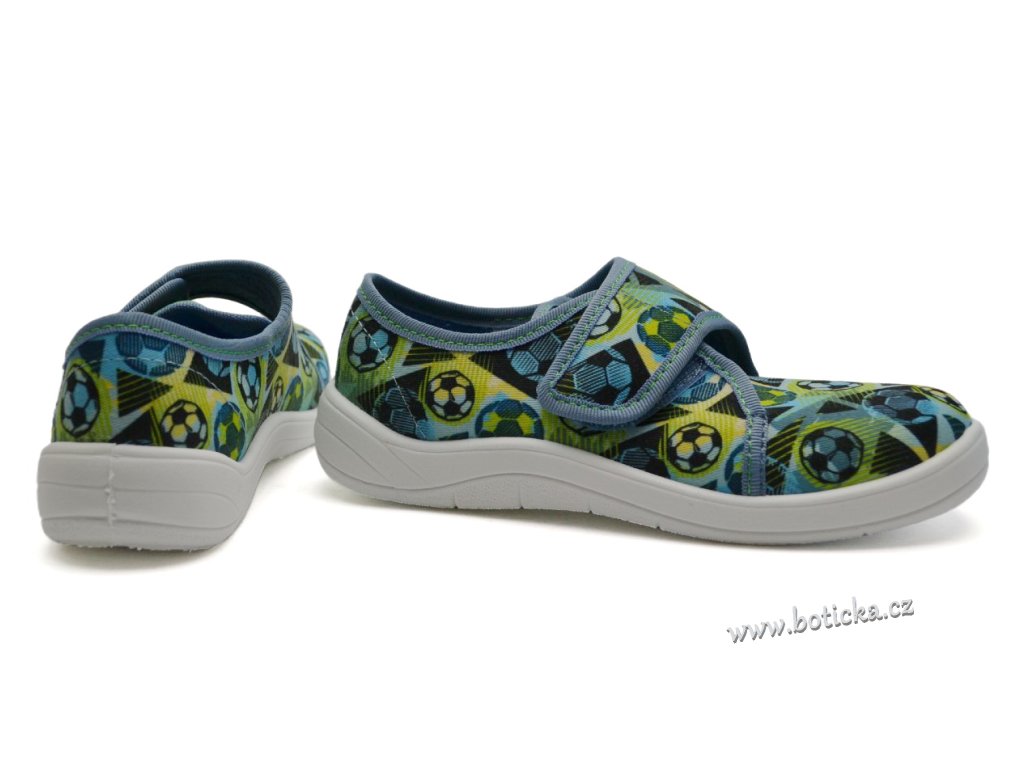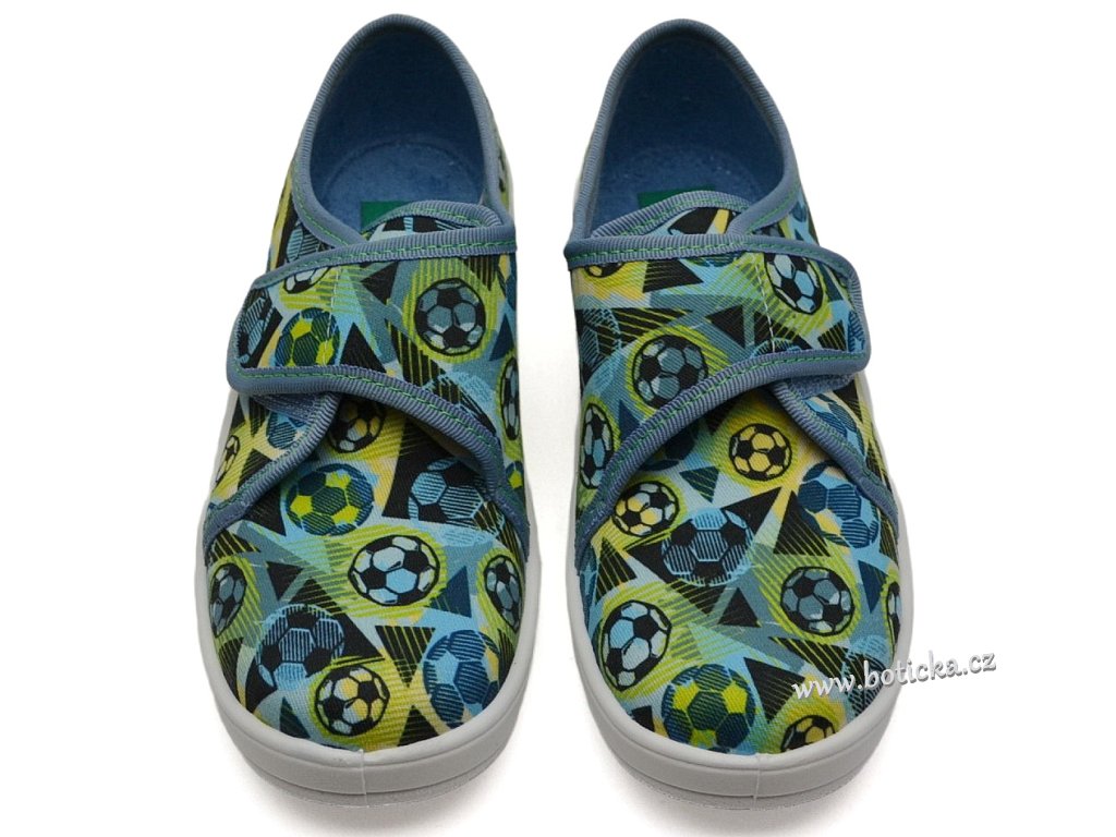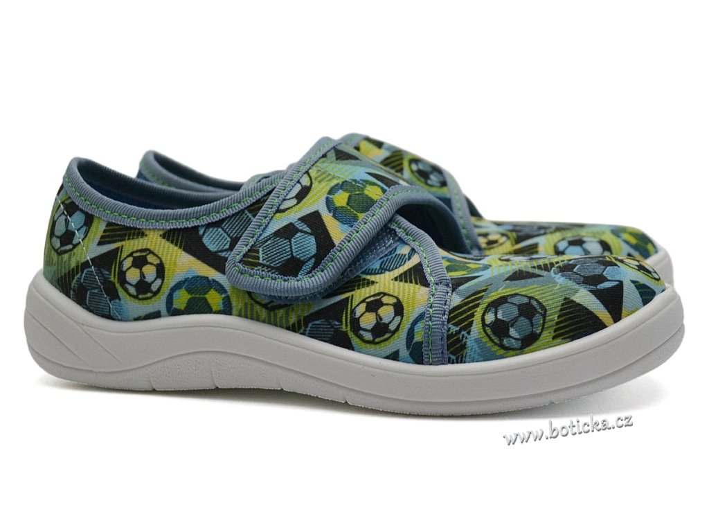 Textilní bačkory se zapínáním na suchý zip. Velmi lehké, ohebné. Provětrávané do podešve. Podšívka jemné froté. Výhodou je mírná okopová špička. Bačkůrky jsou vhodné do interiéru, tedy např. do školky či školy.