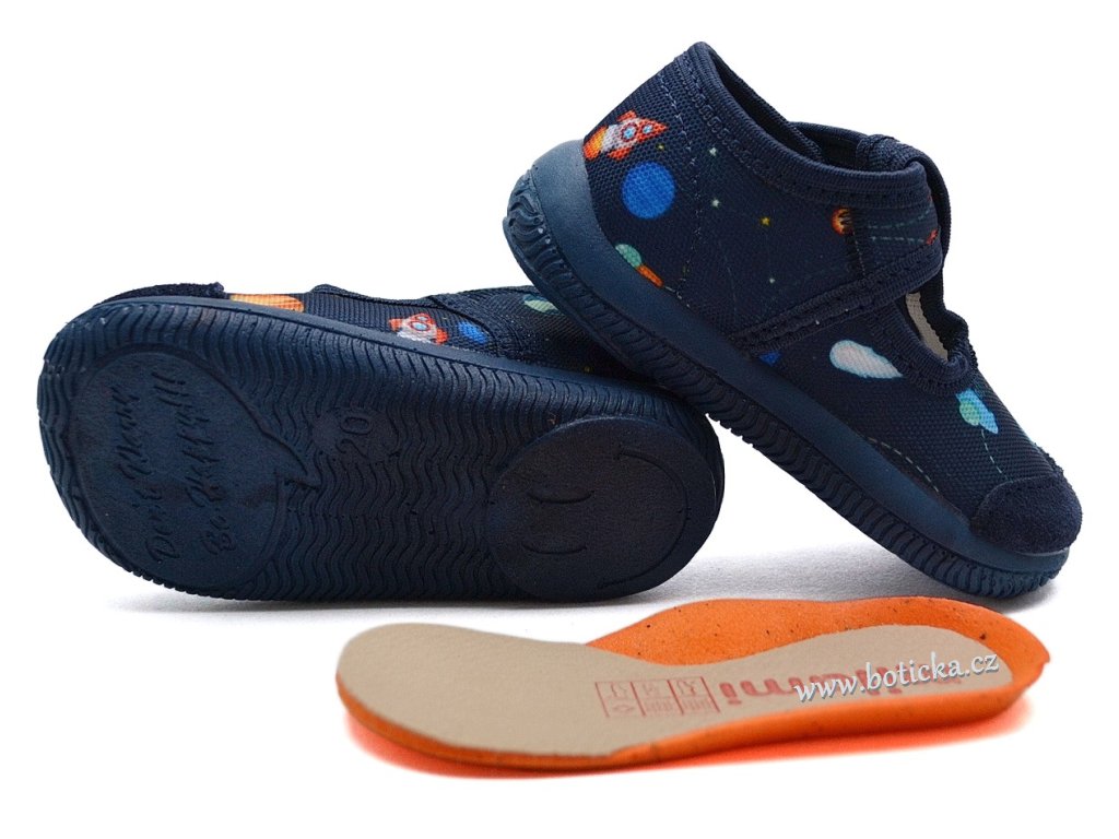 Dětské bačkory - domácí přezůvky, se zapínáním na suchý zip. Lehké s ohebnou podešví, výhodou je kožená, vyjímatelná, anatomicky tvarovaná stélka a zpevněný opatek. Podešev vhodná i pro pobyt venku. Země původu Srbsko