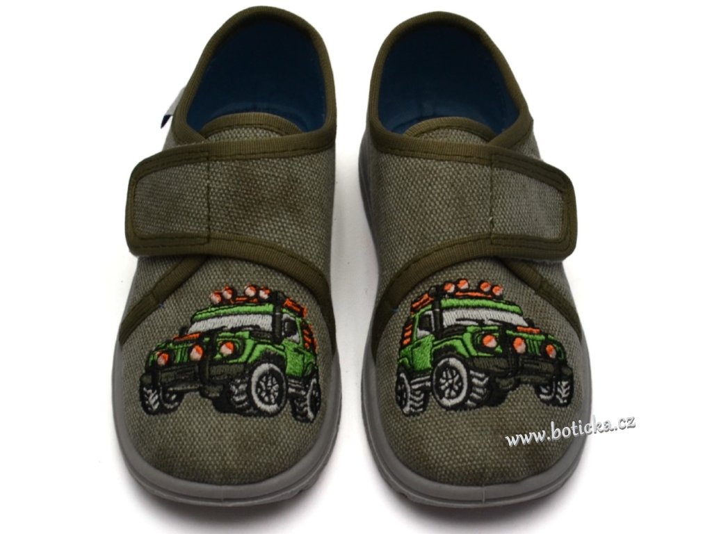 Chlapecké bačkůrky (domácí obuv) se zapínáním na suchý zip, velmi pohodlné, lehké. Ohebná podešev vytvořena s ohledem na ekologii a životní prostředí - podešev obsahuje kukuřici. Stélka je textilní a díky polstrování měkká. NON MARKING - podešev bačkůrek nebarví a nezanechává šmouhy. Podešev je provětrávaná pro lepší odvod vlhkosti z obuvi.