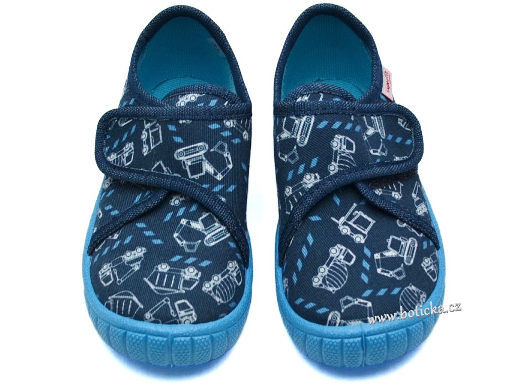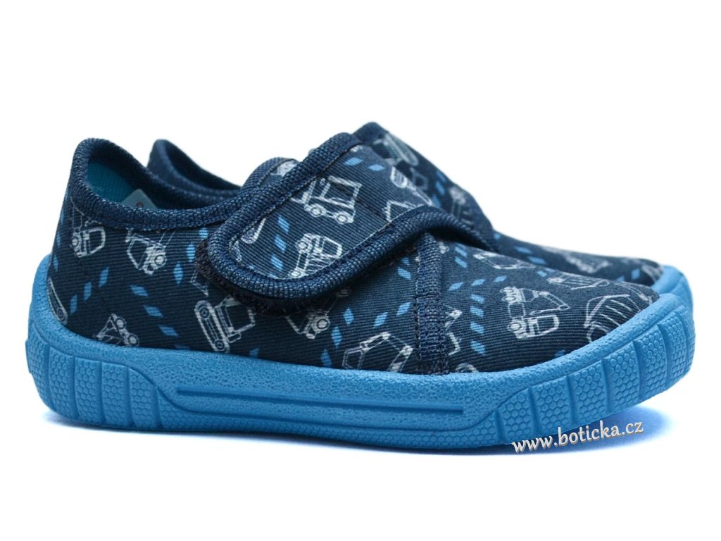Chlapecké bačkůrky (domácí obuv) se zapínáním na suchý zip, velmi pohodlné, lehké, ohebná podešev, střední střih - vhodné pro štíhlé a střední nožičky bez vysokého nártu, provětrávané do podešve