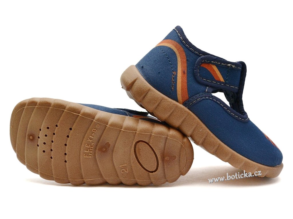Textilní bačkory se zapínáním na suchý zip. Velmi lehké a ohebné díky podešvi FLEXI-B systému. Podšívka z jemného froté. Provětrávané do podešve.