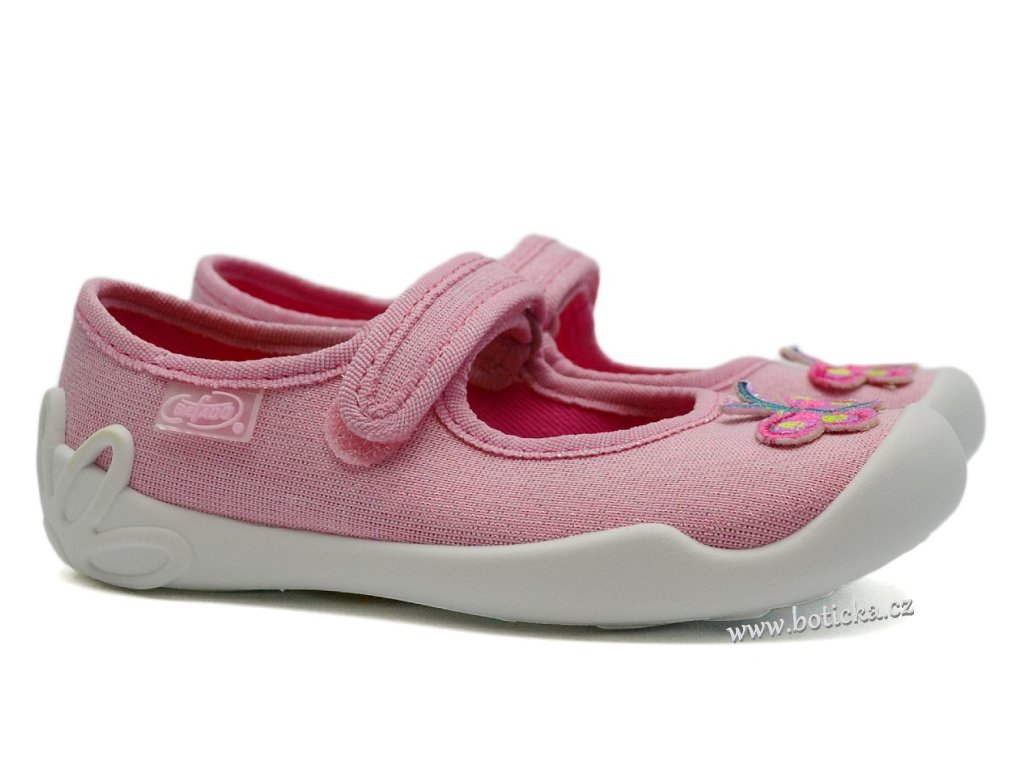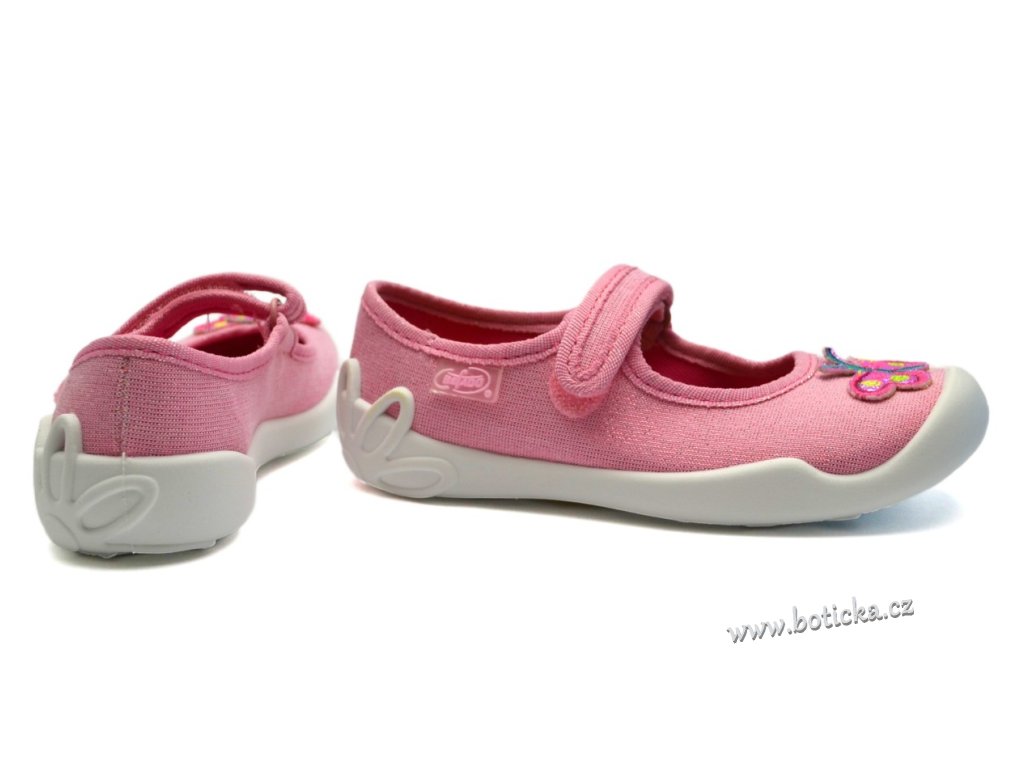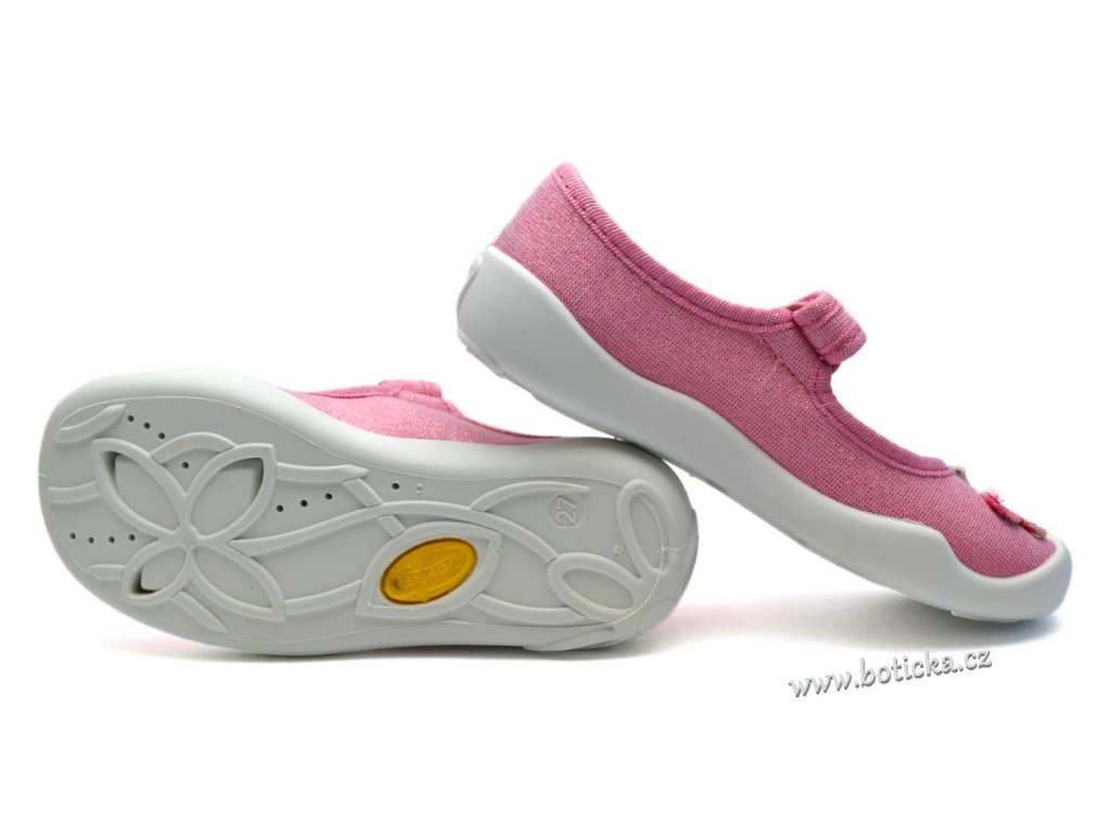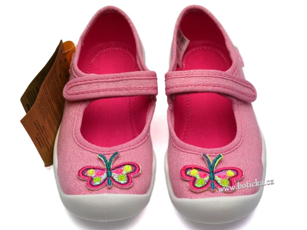 Balerínky - bačkůrky na suchý zip. Odvětraná podrážka zajišťuje prodyšnost boty a odvod nadměrné vlhkosti, lehká, pružná a protiskluzová podrážka pro pohodlí a bezpečnost chůze, speciálně vyztužená pata se SOFT B systémem dělá stélku měkoučkou pro chodidla a zpevněné boky udržují nohu ve správné poloze, široké špičky pro volný pohyb prstů, kvalitní prodyšné materiály, snadné nazouvání se zapínáním na suchý zip.