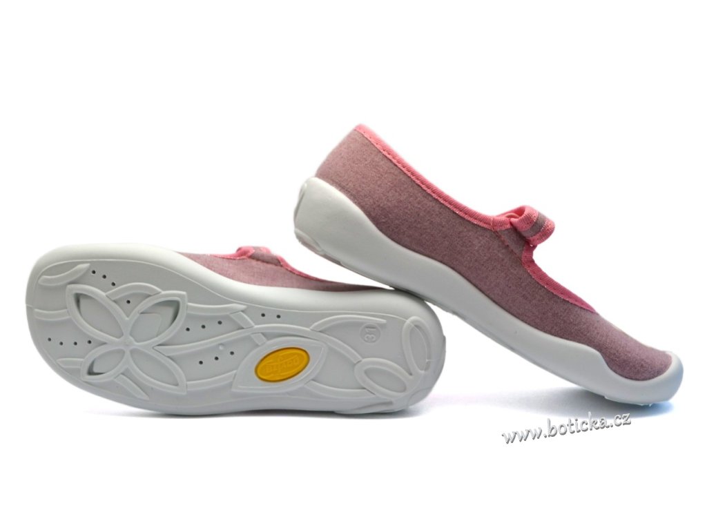 Balerínky - bačkůrky na suchý zip. Odvětraná podrážka zajišťuje prodyšnost boty a odvod nadměrné vlhkosti, lehká, pružná a protiskluzová podrážka pro pohodlí a bezpečnost chůze, speciálně vyztužená pata se SOFT B systémem dělá stélku měkoučkou pro chodidla a zpevněné boky udržují nohu ve správné poloze, široké špičky pro volný pohyb prstů, kvalitní prodyšné materiály, snadné nazouvání se zapínáním na suchý zip.