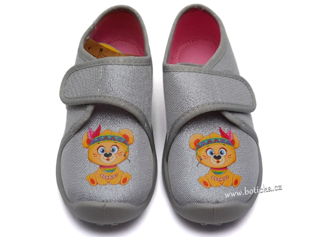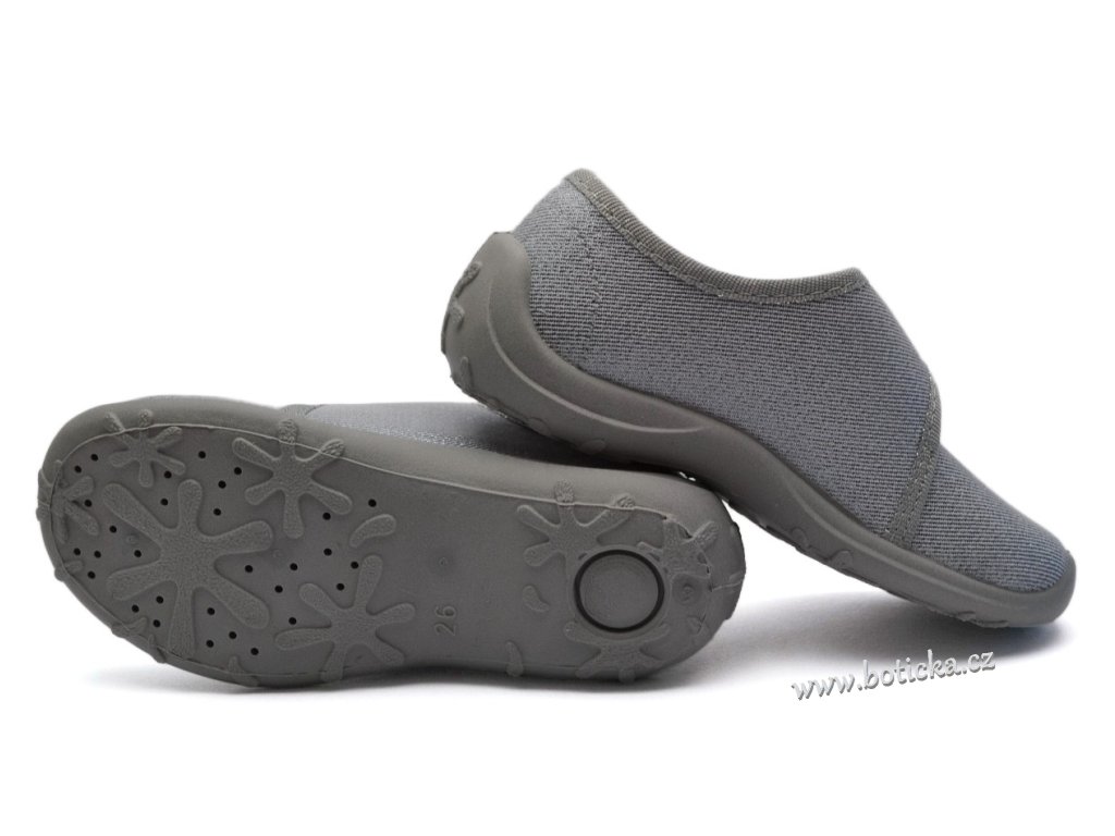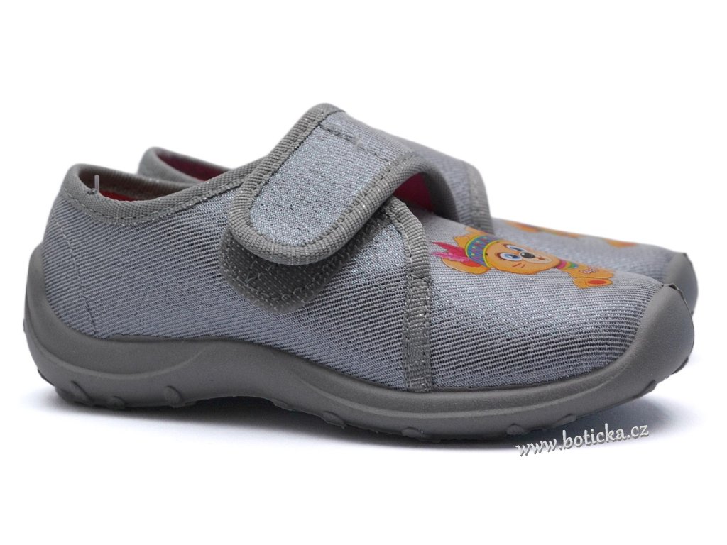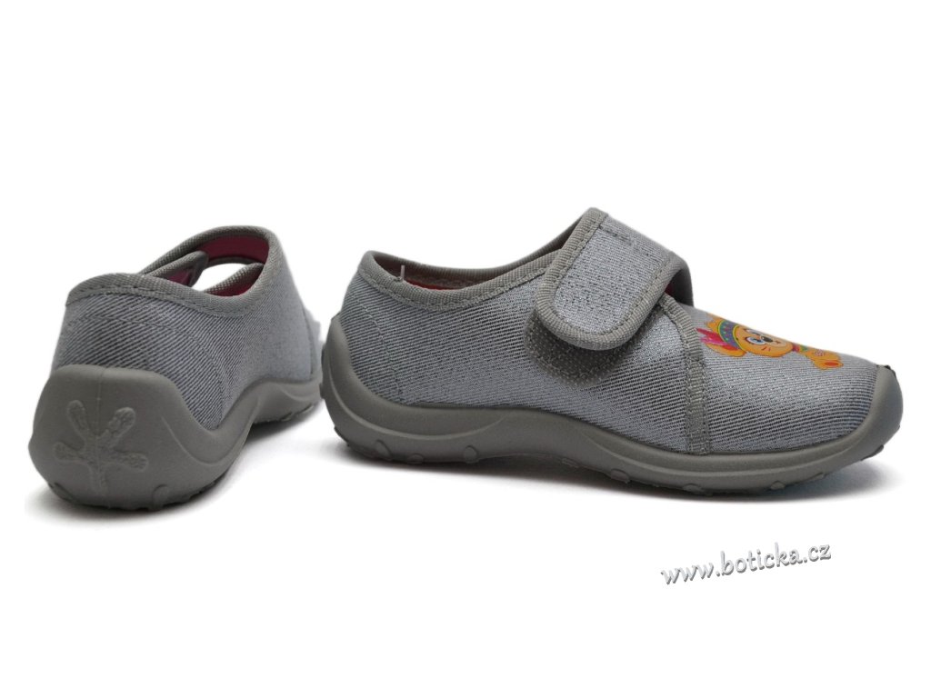 Textilní bačkory se zapínáním na suchý zip. Odvětraná podrážka zajišťuje prodyšnost boty a odvod nadměrné vlhkosti, lehká, pružná a protiskluzová podrážka pro pohodlí a bezpečnost chůze, speciálně vyztužená pata se SOFT B systémem dělá stélku měkoučkou pro chodidla a zpevněné boky udržují nohu ve správné poloze, široké špičky pro volný pohyb prstů, kvalitní prodyšné materiály, snadné nazouvání se zapínáním na suchý zip.