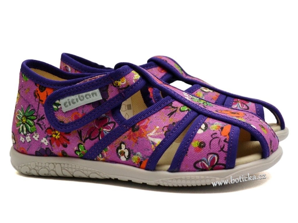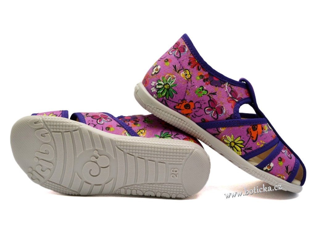 Dětské sandálové bačkory - domácí přezůvky, se zapínáním na suchý zip. Lehké s ohebnou podešví, výhodou je nastavitelný nárt, kožená tvarovaná stélka s klenbou. Podešev vhodná i pro pobyt venku.