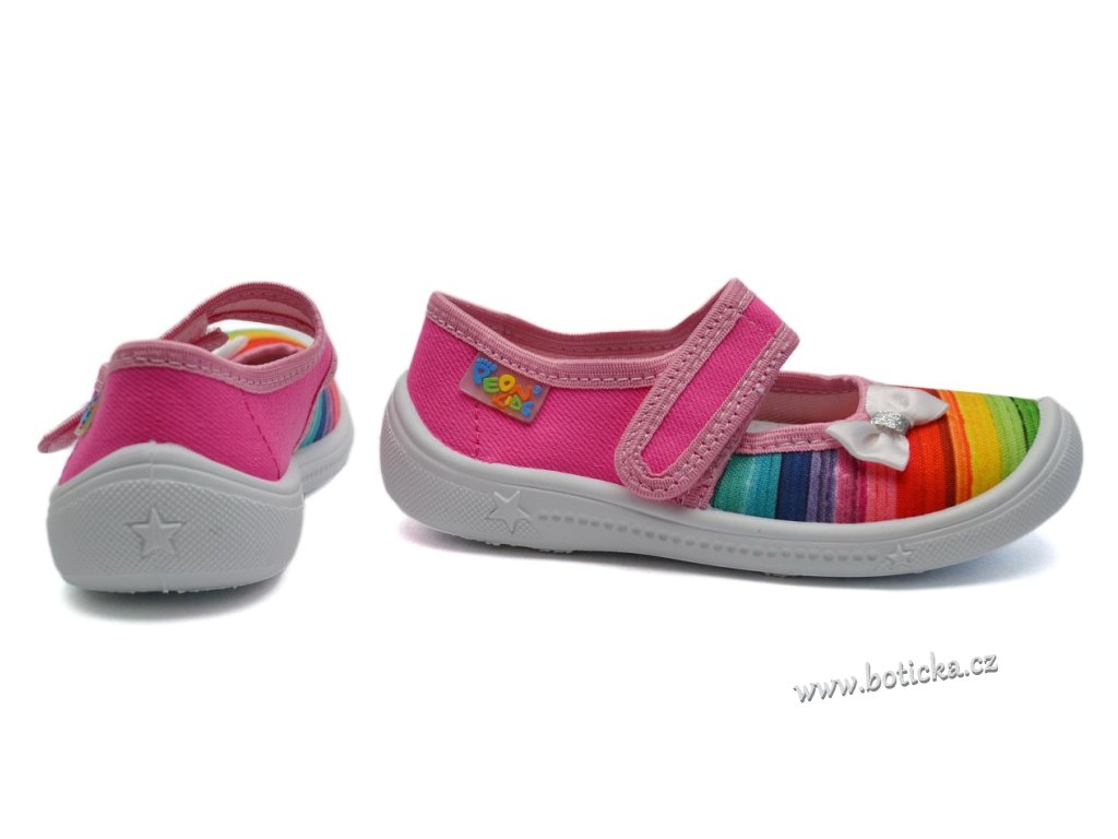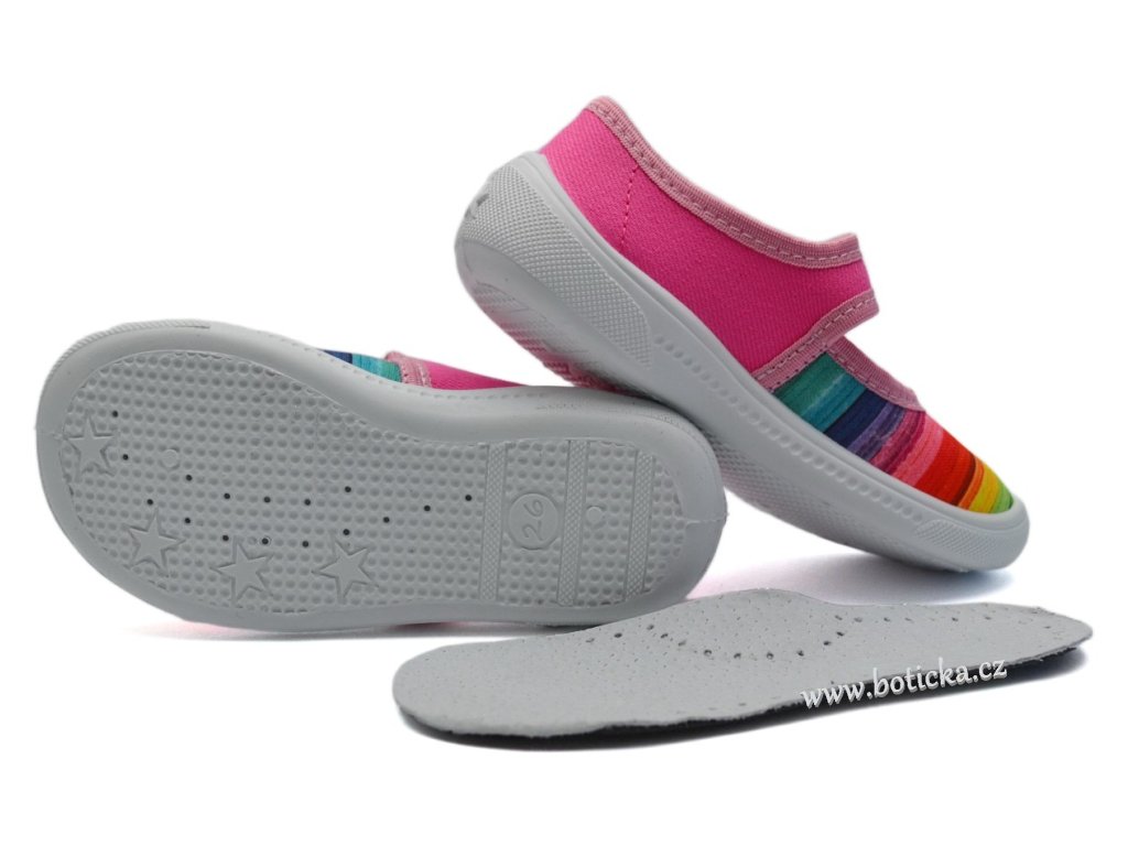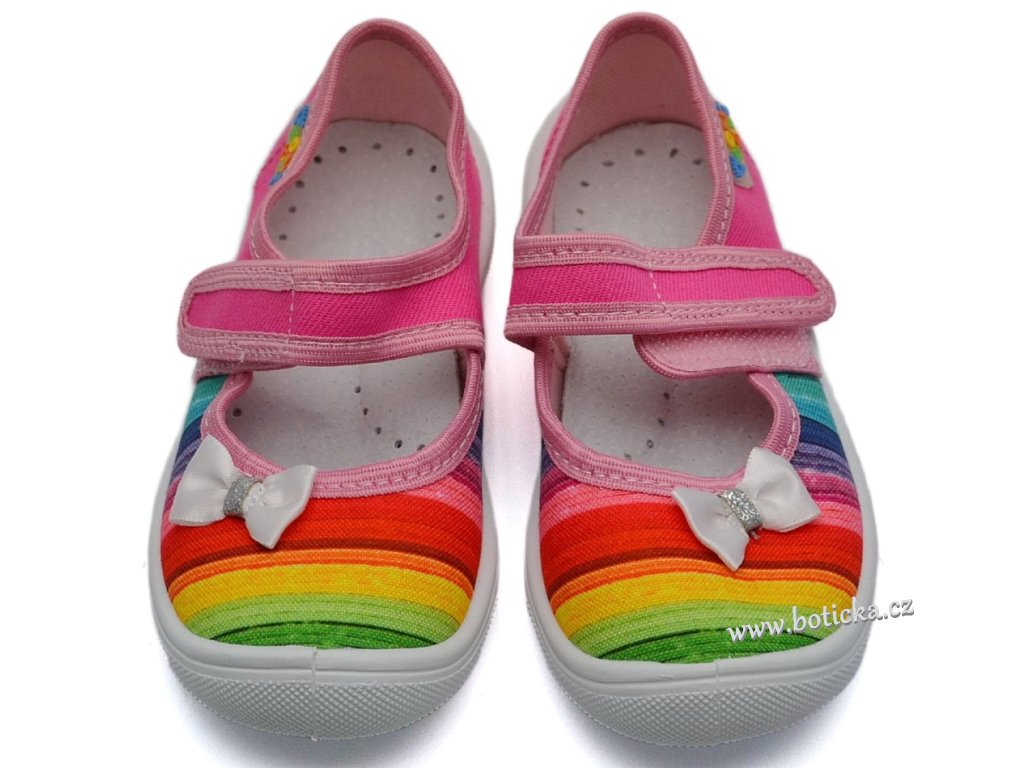 Textilní dívčí balerínkové bačkůrky se zapínáním na suchý zip. Lehké, krásně ohebné, provětrávané do podešve. S vyjímatelnou koženou stélkou. Země původu: Polsko