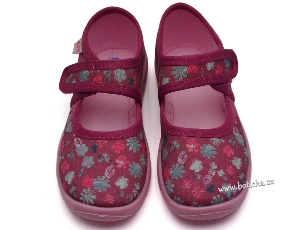 Dívčí balerínkové bačkůrky (domácí obuv) se zapínáním na suchý zip, velmi pohodlné a lehké. Ohebná podešev vytvořena s ohledem na ekologii a životní prostředí - podešev obsahuje kukuřici. Stélka je textilní a díky polstrování měkká.