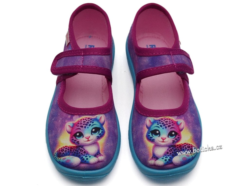 Dívčí balerínkové bačkůrky (domácí obuv) se zapínáním na suchý zip, velmi pohodlné a lehké. Ohebná podešev vytvořena s ohledem na ekologii a životní prostředí - podešev obsahuje kukuřici. Stélka je textilní a díky polstrování měkká.
