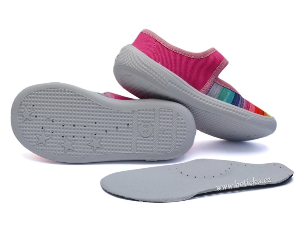 Textilní dívčí balerínkové bačkůrky se zapínáním na suchý zip. Lehké, krásně ohebné, provětrávané do podešve. S vyjímatelnou koženou stélkou. Země původu: Polsko