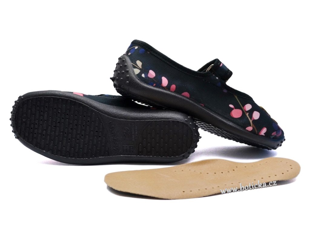 Textilní bačkůrky na boční suchý zip. Lehké, ohebné. Vhodné pro střední nožičky, nevhodné pro dívky s vyšším nártem. Země původu. Polsko