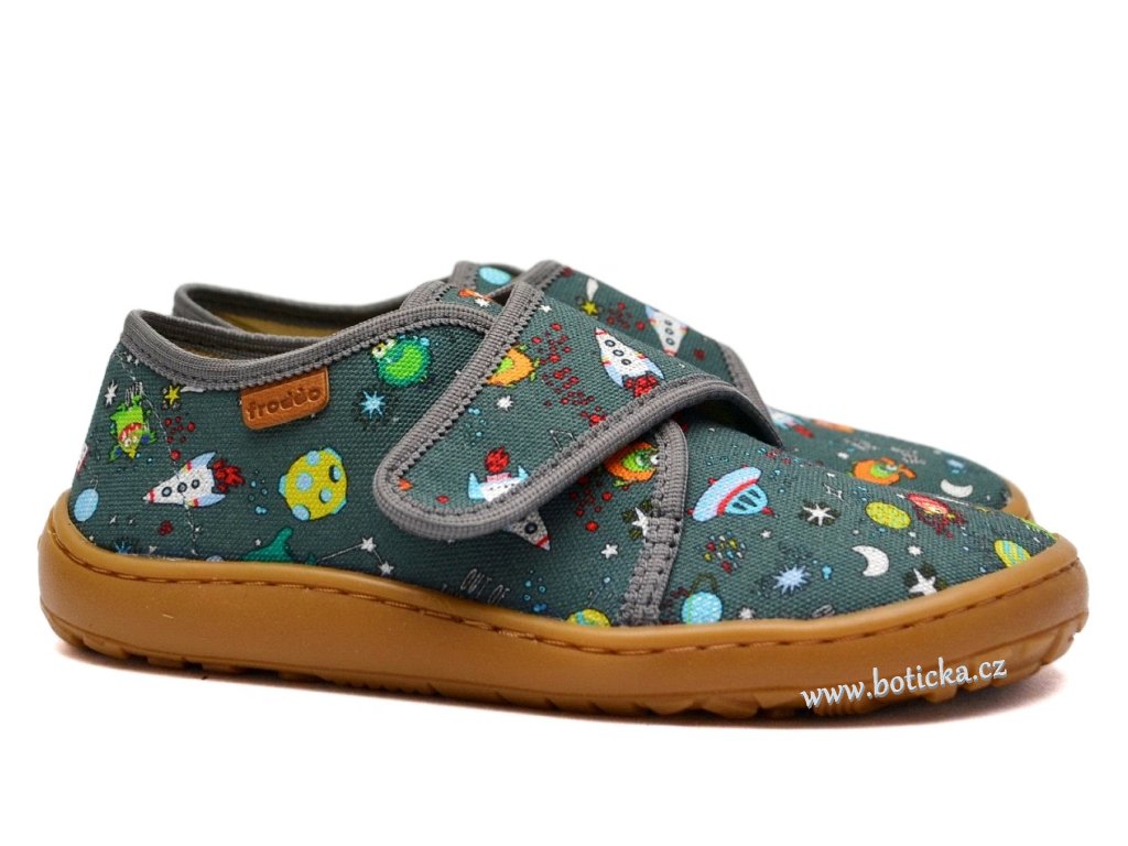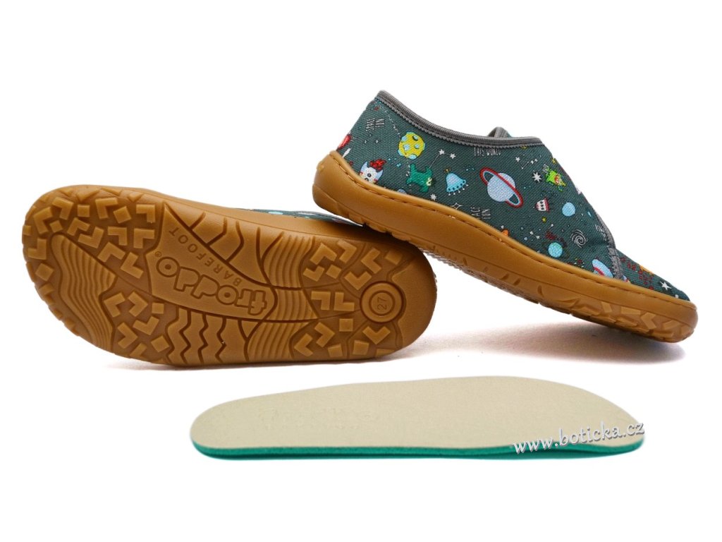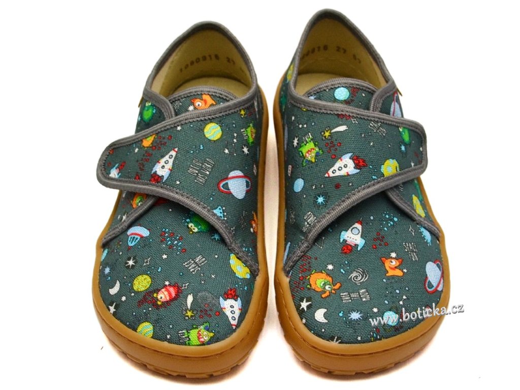 Jde o dětskou, textilní, barefootovou obuv se zapínáním na suchý zip, vhodná nejlépe do měkkého nerovného terénu, jako je zahrada, písek, kamínky a podobně nebo jako domácí obuv. Výhodou je ohebná podešev, rozšíření v místě prstů a vyjímatelná kožená stélka. Špička obuvi krásně kopíruje prsty a ty tak mají dostatek prostoru.