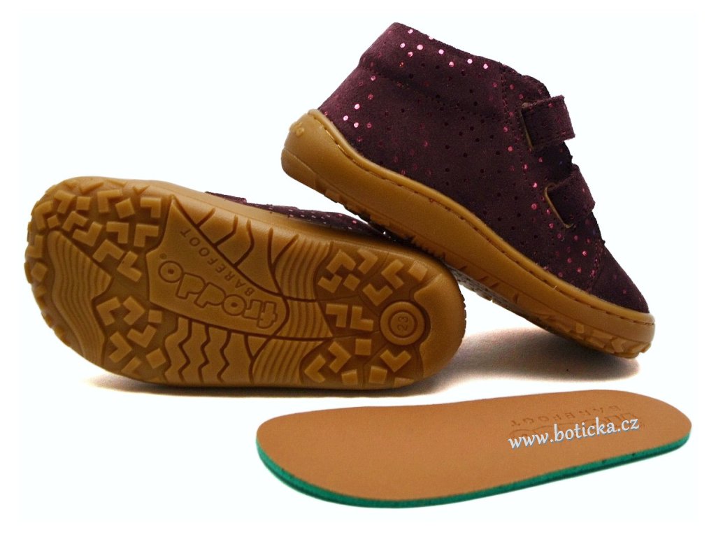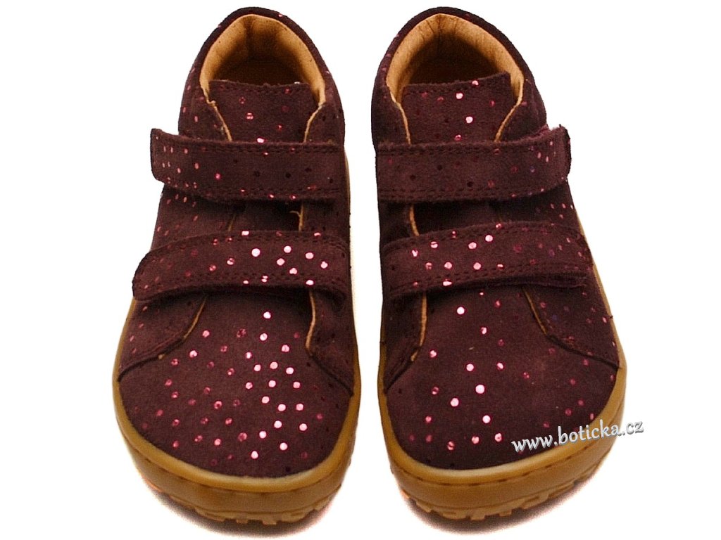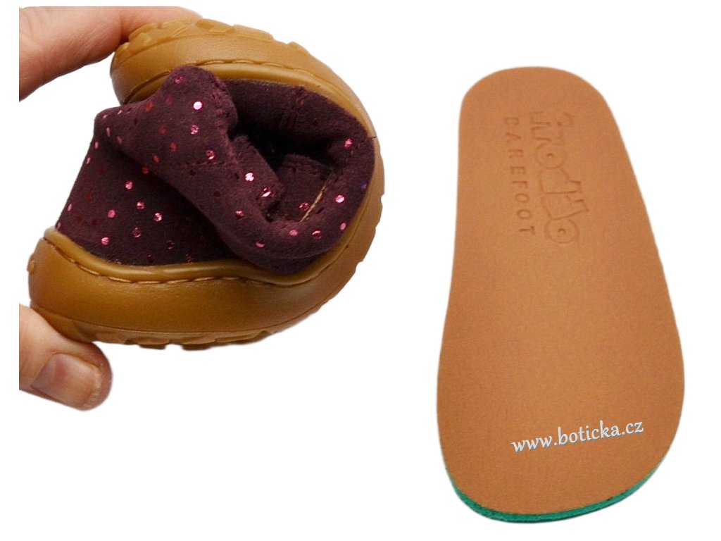 Jde o dětskou, koženou, barefootovou kompromisní obuv se zapínáním na suchý zip, vhodná nejlépe do měkkého nerovného terénu, jako je zahrada, písek, kamínky a podobně. Výhodou je ohebná podešev, rozšíření v místě prstů a vyjímatelná kožená stélka. Vhodné pro každodenní nošení od jara do zimy, v teplotním rozmezí cca 5-20°C podle vnitřní termoregulace dítěte.
