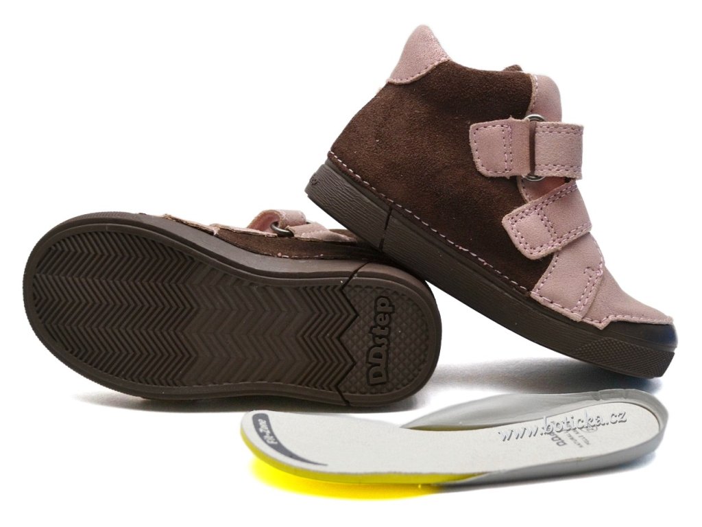 Kožené kotníkové vycházkové botky se zapínáním na suchý zip, s anatomicky tvarovanou koženou stélkou, okopová špička chrání botičky před okopáním. Tyto botičky jsou vhodné do cca 5-18°C, v závislosti na individuální tělesné termoregulaci dítěte.