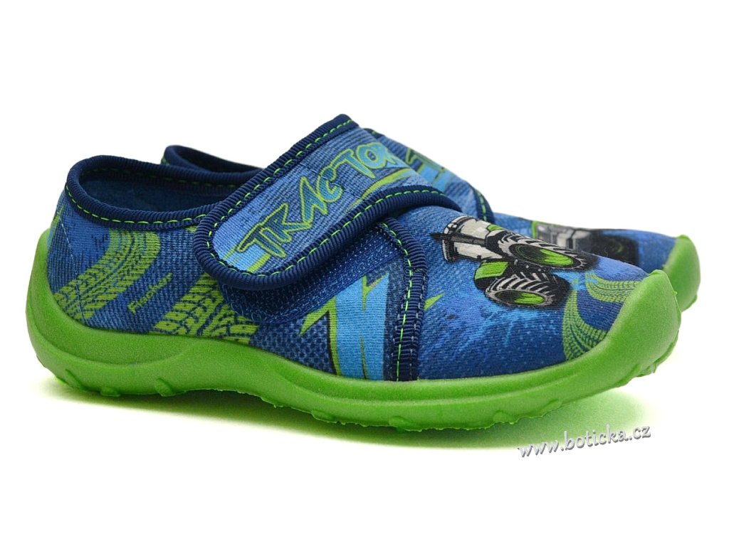 Textilní bačkory se zapínáním na suchý zip. Velmi lehké, ohebné. Provětrávané do podešve. Podšívka jemné froté. Výhodou je mírná okopová špička. Bačkůrky jsou vhodné do interiéru, tedy např. do školky či školy.