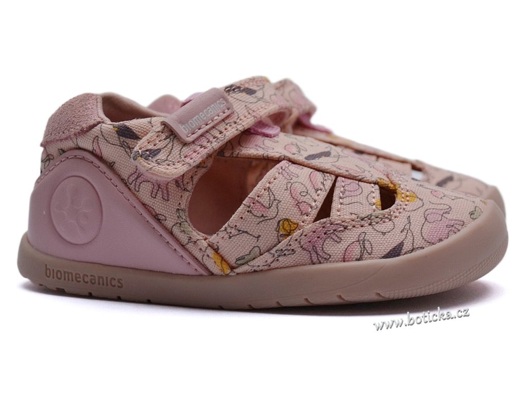 Dětské barefoot sanedály Biomecanics. Zapínání na suchý zip, lehká boční fixace kotníku, nezatěžuje achilovku. Velmi lehké a ohebné. Botky mají anatomicky tvarovanou přední část, prstíky tak mají dostatek prostoru, ovšem nejsou úplně vhodné pro dominantní palec.