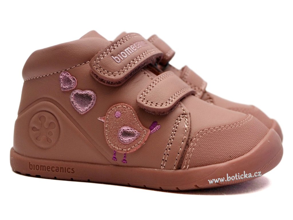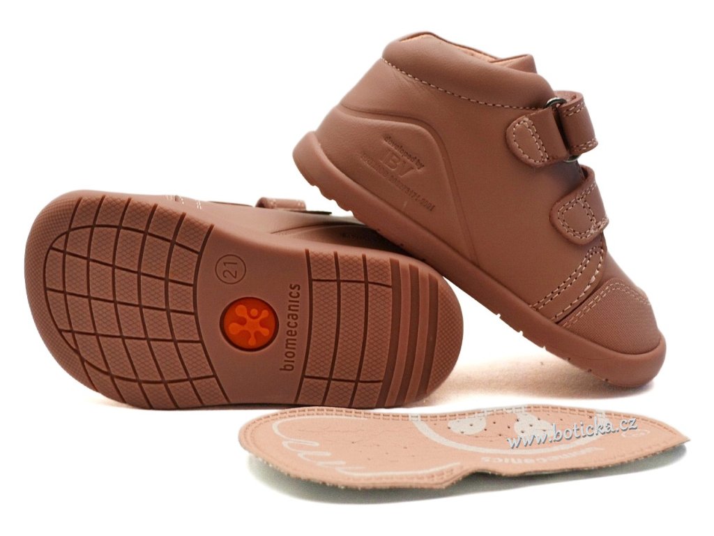 Dětské barefoot kožené boty Biomecanics. Zapínání na dva suché zipy, lehká boční fixace kotníku, nezatěžuje achilovku. lehké a ohebné. Botky mají anatomicky tvarovanou přední část, prstíky tak mají dostatek prostoru, ovšem nejsou úplně vhodné pro dominantní palec.