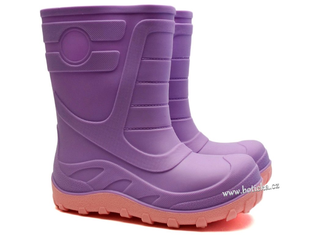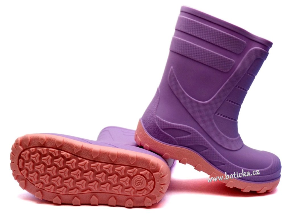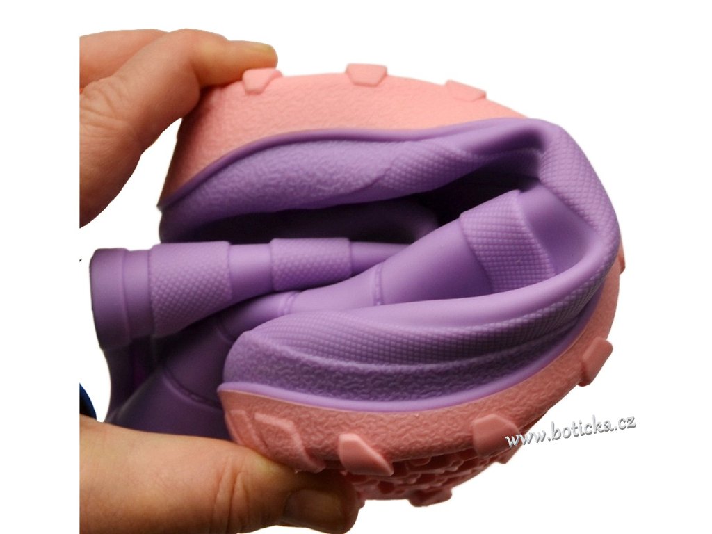 Tyto dívčí holínky / gumáky jsou lehké a maximálně ohebné, takže děti ani po delší době nebolí nožičky. Jsou vhodné jako gumáky od jara do podzimu. Podrážka botiček není rovná, ale lehce tvarovaná. Botky nemají zpevněný opatek. Holínky mají vyjímatelnou froté stélku