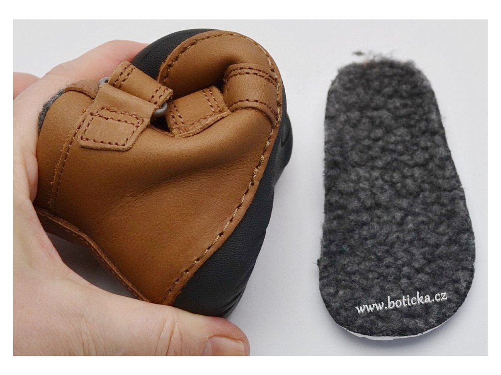 Dětské zimní kotníkové kožené lehké vycházkové botky s krásně ohebnou podešví, zateplené umělým kožíškem, s anatomicky tvarovanou koženou stélkou a mírně zpevněným opatkem, okopová špička ochrání botičky před okopáním