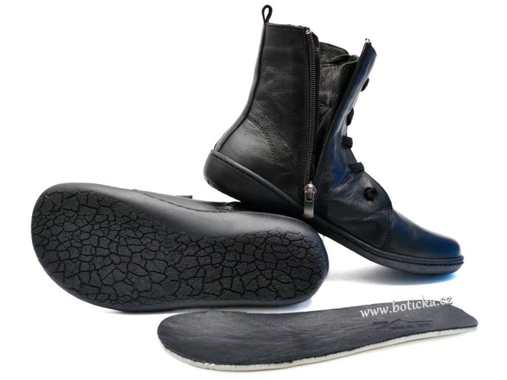 Dámské barefoot kotníkové boty KTR. Vhodné pro každodenní nošení v teplotním rozmezí cca 15-0°C v závislosti na vnitřní termoregulaci. Botky jsou velmi lehce zateplené. Praktický boční zip na vnitřní straně bot ulehčí obouvání + na přední straně stahování formou pružné gumy. Výhodou je vyjímatelná stélka, lze ji případně vyměnit za teplejší vlněnou. Anatomický tvar obuvi poskytuje prostor pro prsty. Botky jsou lehké a ohebné.