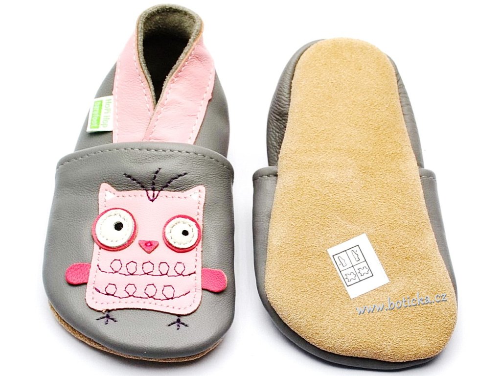 Hopi Hop BAREFOOT kožené capáčky SOVINKA na šedé
