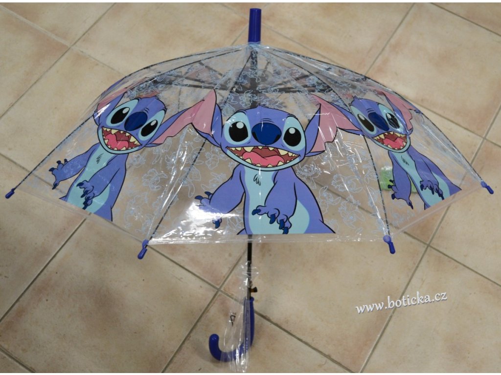 Dětský deštník s motivem Lilo a Stitch, holový, automatické otevírání. Průhledný. Vhodný pro školkové děti.