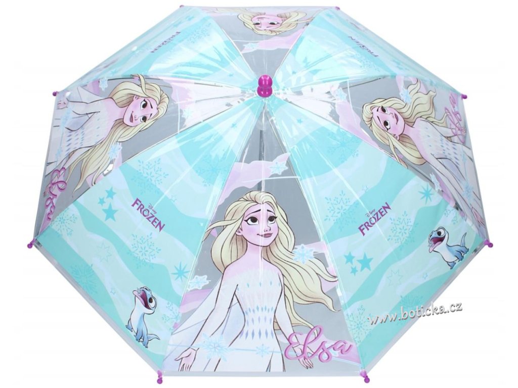 Dívčí deštník Frozen pro malé slečny. Dětský deštník holový manuální. Průhledný.