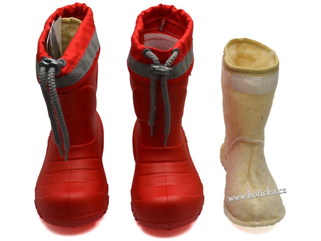 Tato dětská obuv je možnou alternativou k zimnímu barefoot obutí. Botky jsou velmi lehké, takže děti ani po delší době nebolí nožičky. Se zateplenou vložkou z pravé ovčí vlny jsou velmi teplé, vhodné jako sněhule do zimy až do -20°C (samozřejmě s teplou ponožkou). Bez vložky jsou vhodné jako gumáky. Podrážka botiček není rovná, vzadu mírný podpatek. Bota nemá podporu klenby. Uvnitř vlněná vyjímatelná vložka s pravou ovčí vlnou, připínatelná uvnitř k obuvi dvěma suchými zipy.