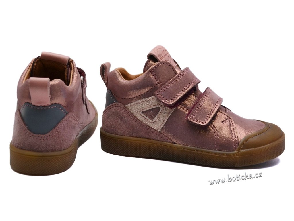 Celoroční kožené vycházkové boty se zapínáním na suchý zip. Anilinová kůže, ze které jsou botky vyrobeny, se vyznačuje příjemným omakem a pružností a patří mezi nejkvalitnější druhy kůže, je vzdušnější oproti jiným typům kůže díky odlišné úpravě. Botky jsou barveny přirozeně za použití transparentních, ve vodě rozpustných barevných látek, které jsou ekologické.