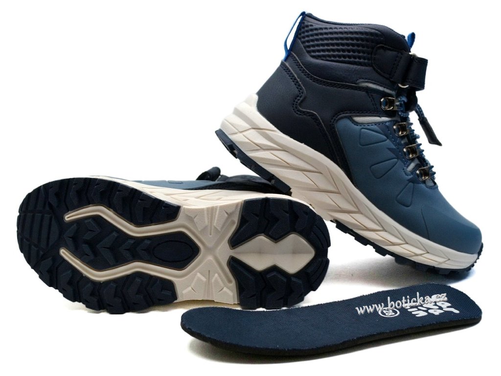 Kotníkové membránové boty pro děti, pevné se silnou podrážkou a zesílenou špičkou. Skutečné boty do každého terénu. Se zapínáním na suchý zip + utahování přes nárt. Vyjímatelná antibakteriální stélka. Vhodné pro každodenní nošení od jara do zimy, v teplotním rozmezí cca 5-18°C v závislosti na vnitřní termoregulaci dítěte.