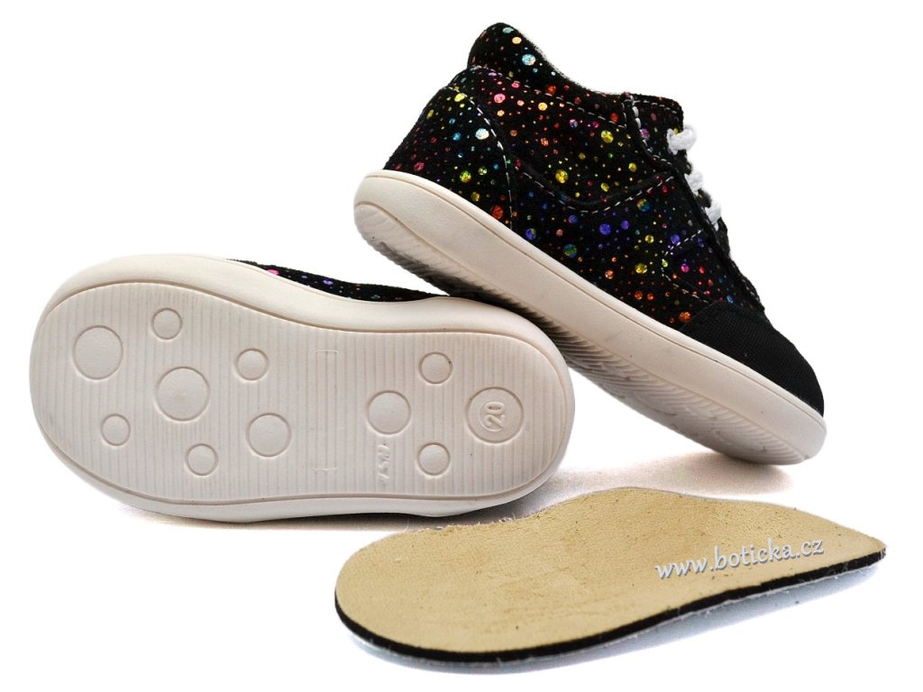 Celoroční vycházkové botičky s krásně ohebnou podešví, šněrovací, vyrobené z broušené kůže s textilní podšívkou, vyvinuty pro maximální flexibilitu a lehkost obuvi, která vyhovuje současným trendům na odlehčenou a flexibilní obuv a vyhovuje zdravotním požadavkům. Výhodou je vyjímatelná textilní stélka a středně zpevněný opatek. Vyrobeno v ČR.