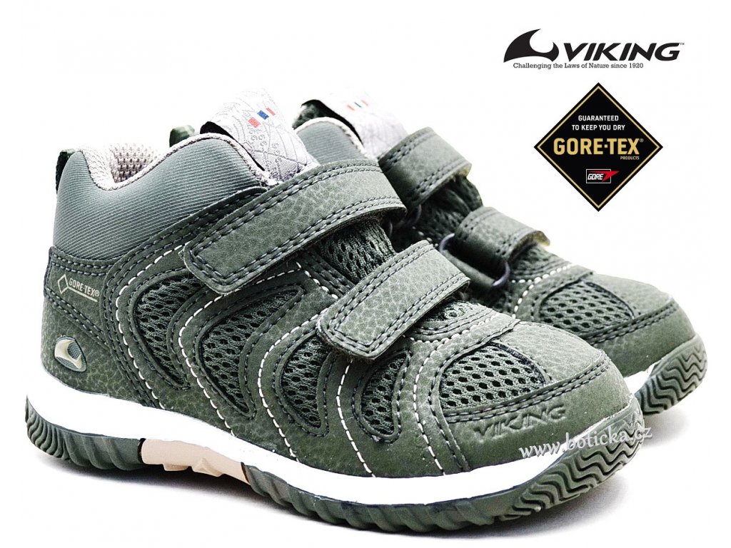 Celoroční obuv norské značky VIKING s membránou GORE-TEX je extrémně lehká, s ohebnou podešví, nempromokavá, prodyšná, s pevným opatkem, a kvalitní vyjímatelnou stélkou. Zapínaní na dva suché zipy, střední střih.