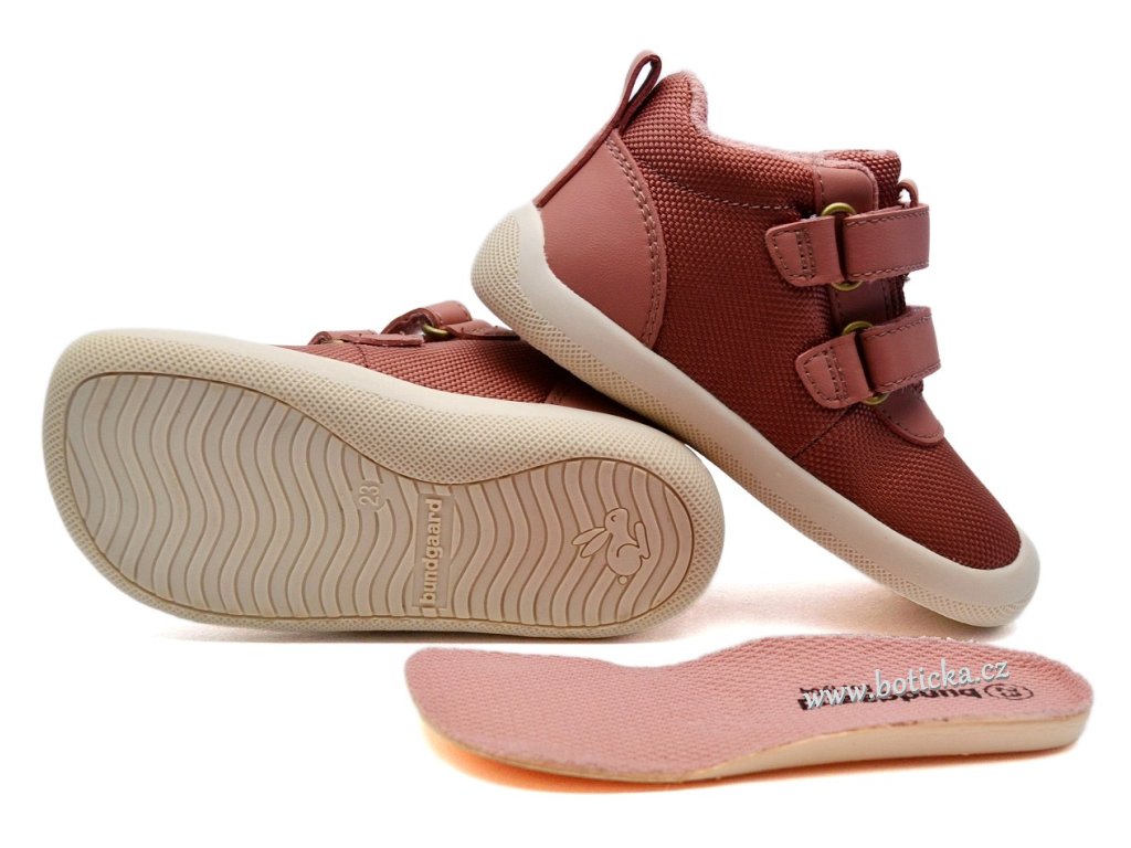 Dětské, kotníčkové, nepromokavé boty BUNDGAARD WALK Sport TEX - velmi lehké a příjemné botky, nepromokavé díky membráně Bundgaard-tex. Botky disponují měkoučkou stélkou a zpevněným opatkem, jedná se tedy o barefoot kompromis. Boty mají optimální tvar kopírující tvar chodidla, jsou tedy vhodné i pro dominantní palec. Zapínání na suchý zip.