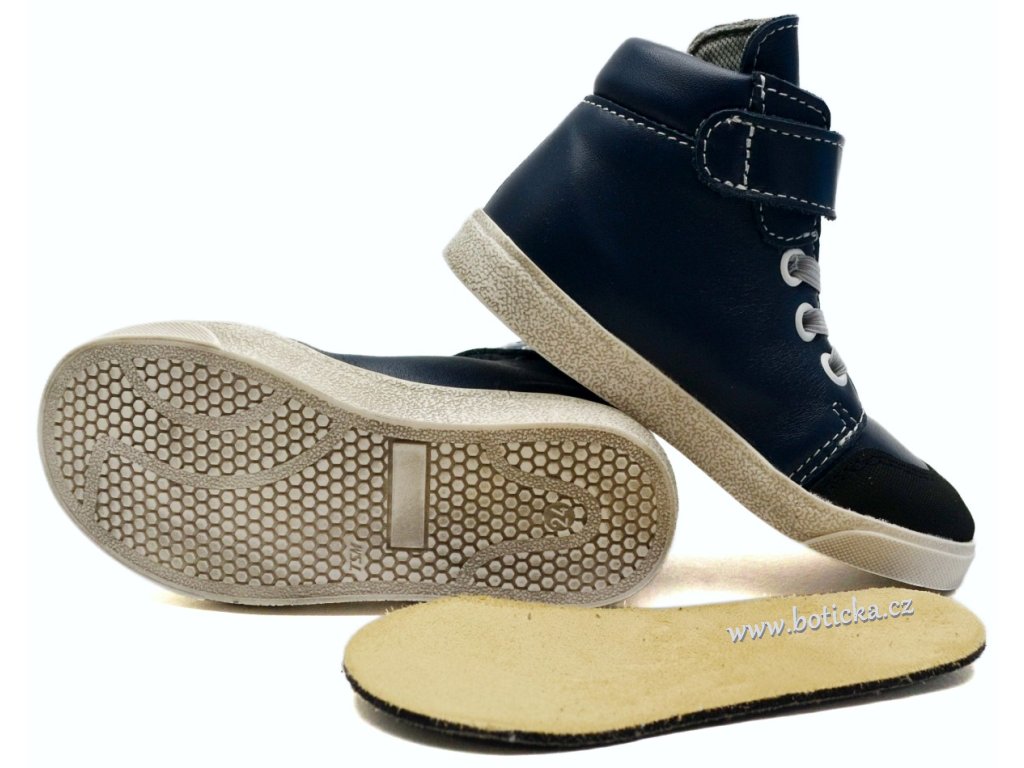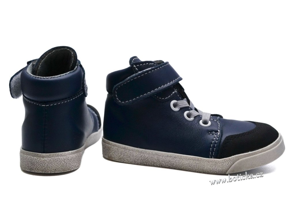 Celoroční vycházkové kožené botičky, lehké, s ohebnou podešví, vyrobené z broušené kůže s textilní podšívkou. Místo šněrovadla je použita pružinka, aby se obuv s kombinací se suchým zipem nemusela šněrovat. Výhodou je vyjímatelná kožená stélka a středně zpevněný opatek. Vyrobeno v ČR.