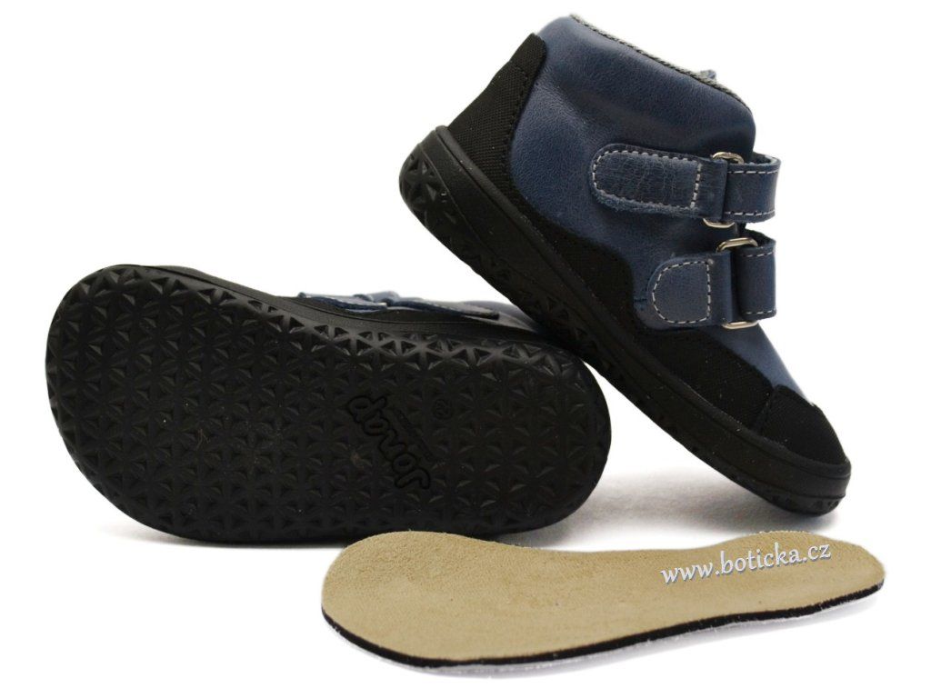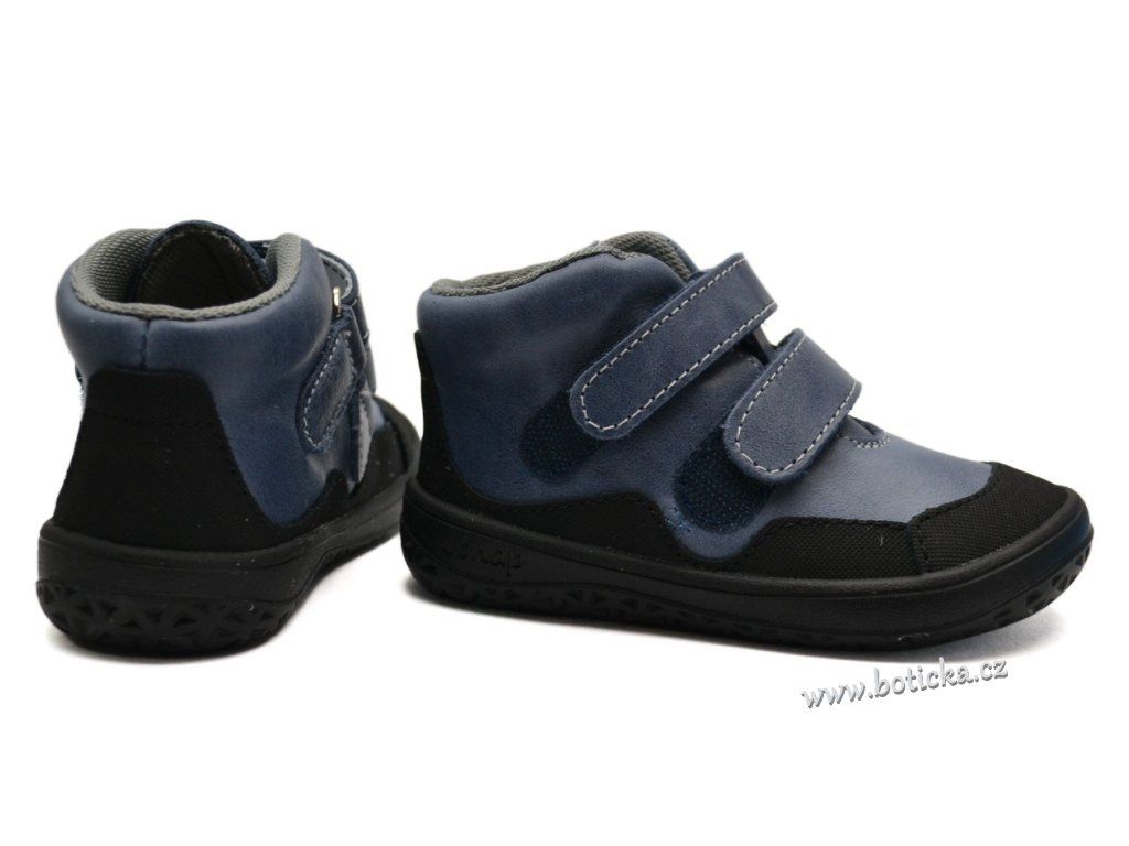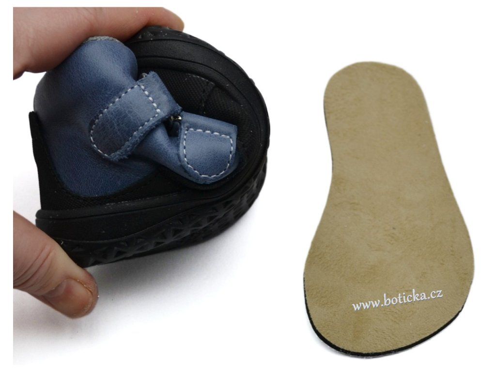 Polovysoké boty vhodné do podzimních plískanic na barefootové podešvi vyrobené v kombinaci přírodních materiálů. Jde o dětskou obuv se zapínáním na suchý zip, která simuluje cvičení a proto je vhodná pouze na časově omezenou dobu, nejlépe v nerovném terénu, jako je zahrada, písek, kamínky a podobně. Výhodou je maximálně ohebná podešev, rozšíření v místě prstů, vyjímatelná kožená stélka a mírně zpevněný opatek. Jedná se o barefoot kompromis. Vyrobeno v ČR.