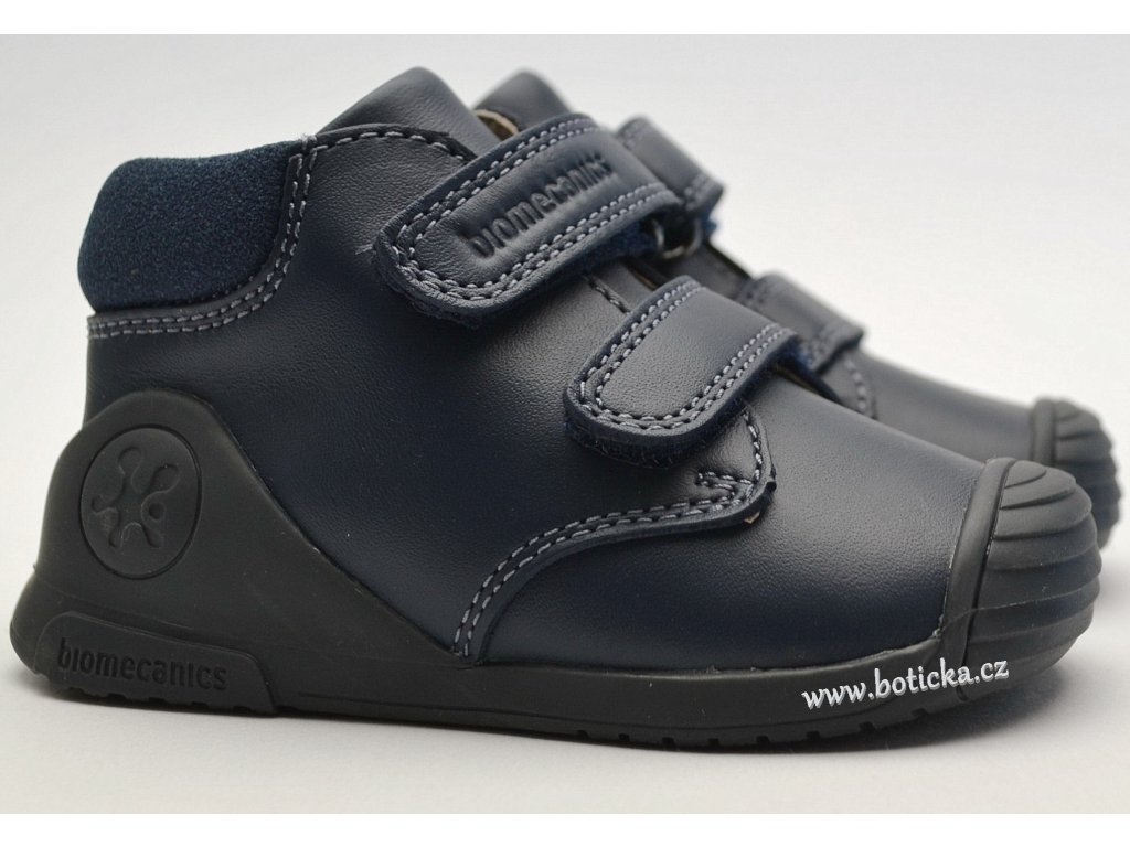 Celoroční kožené botky španělské značky BIOMECANICS. Zapínání na suchý zip. Vyrobeny z přírodních materiálů bez použití chromu či mosazi. Vyjímatelná antibakteriální kožená stélka. Okopová špička chrání botu před rychlým opotřebením. Přední část podešve krásně ohebná. Kotník zůstává pohyblivý díky patě ve tvaru "U", což zabraňuje tlaku na Achillovu patu. Boční stabilizátor, který kontroluje pohyby nohy v bočních směrech. Maximální stabilita díky stélce typu "sloní noha". Navrženo ve spolupráci se španělskou asociací pediatrů.