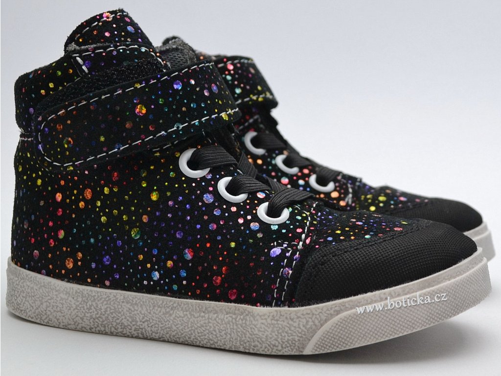Celoroční vycházkové kožené botičky, lehké, s ohebnou podešví, vyrobené z broušené kůže s textilní podšívkou. Místo šněrovadla je použita pružinka, aby se obuv s kombinací se suchým zipem nemusela šněrovat. Výhodou je vyjímatelná kožená stélka a středně zpevněný opatek. Vyrobeno v ČR.