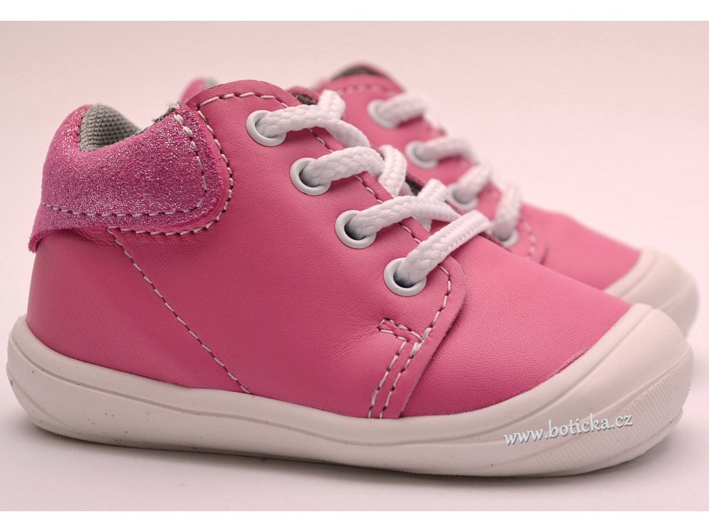 Celoroční vycházkové botičky s krásně ohebnou podešví, šněrovací, vyrobené z broušené kůže s textilní podšívkou, vyvinuty pro maximální flexibilitu a lehkost obuvi, která vyhovuje současným trendům na odlehčenou a flexibilní obuv a vyhovuje zdravotním požadavkům. Výhodou je vyjímatelná textilní stélka a středně zpevněný opatek. Vyrobeno v ČR.