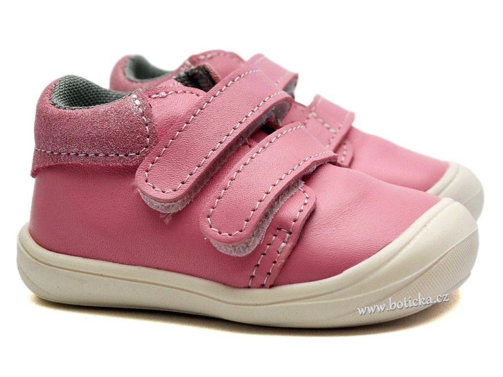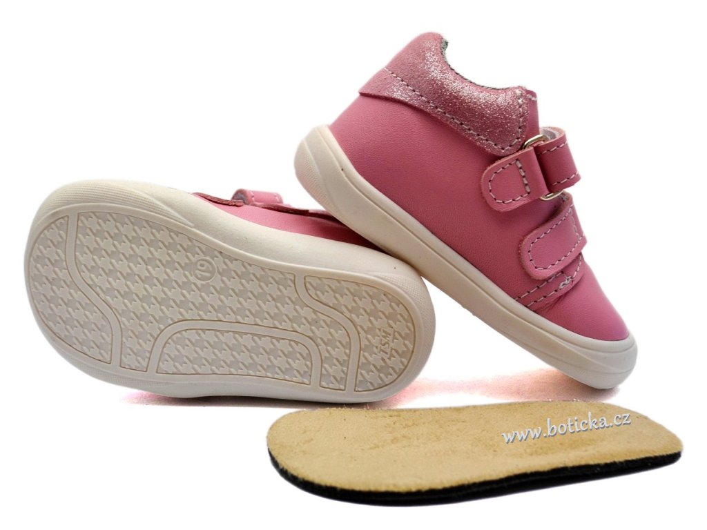 Celoroční vycházkové botičky s krásně ohebnou podešví, se zapínáním na suchý zip, vyrobené z broušené kůže s textilní podšívkou, vyvinuty pro maximální flexibilitu a lehkost obuvi, která vyhovuje současným trendům na odlehčenou a flexibilní obuv a vyhovuje zdravotním požadavkům. Výhodou je vyjímatelná textilní stélka a středně zpevněný opatek. Vyrobeno v ČR.