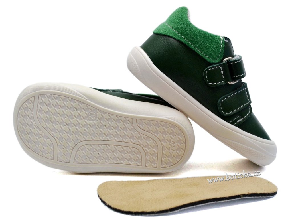 Celoroční vycházkové botičky s krásně ohebnou podešví, se zapínáním na suchý zip, vyrobené z broušené kůže s textilní podšívkou, vyvinuty pro maximální flexibilitu a lehkost obuvi, která vyhovuje současným trendům na odlehčenou a flexibilní obuv a vyhovuje zdravotním požadavkům. Výhodou je vyjímatelná textilní stélka a středně zpevněný opatek. Vyrobeno v ČR.