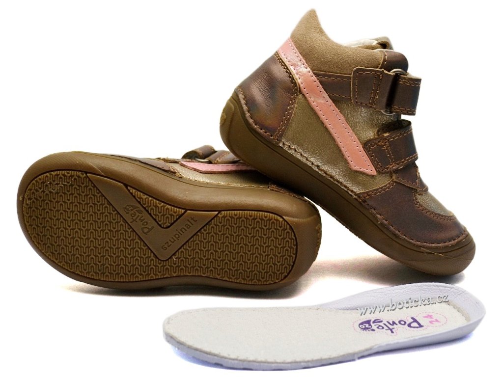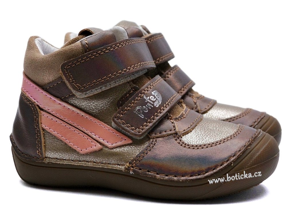 Kožené vycházkové botky se zapínáním na suchý zip, s anatomicky tvarovanou koženou stélkou, okopová špička chrání botičky před okopáním. Jsou celoroční, neboť jsou vhodné do cca 5-18°C, v závislosti na individuální tělesné termoregulaci dítěte.