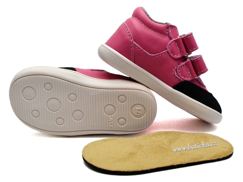 Celoroční vycházkové botičky s krásně ohebnou podešví, se zapínáním na suchý zip, vyrobené z broušené kůže s textilní podšívkou, vyvinuty pro maximální flexibilitu a lehkost obuvi, která vyhovuje současným trendům na odlehčenou a flexibilní obuv a vyhovuje zdravotním požadavkům. Výhodou je vyjímatelná textilní stélka a středně zpevněný opatek. Vyrobeno v ČR.