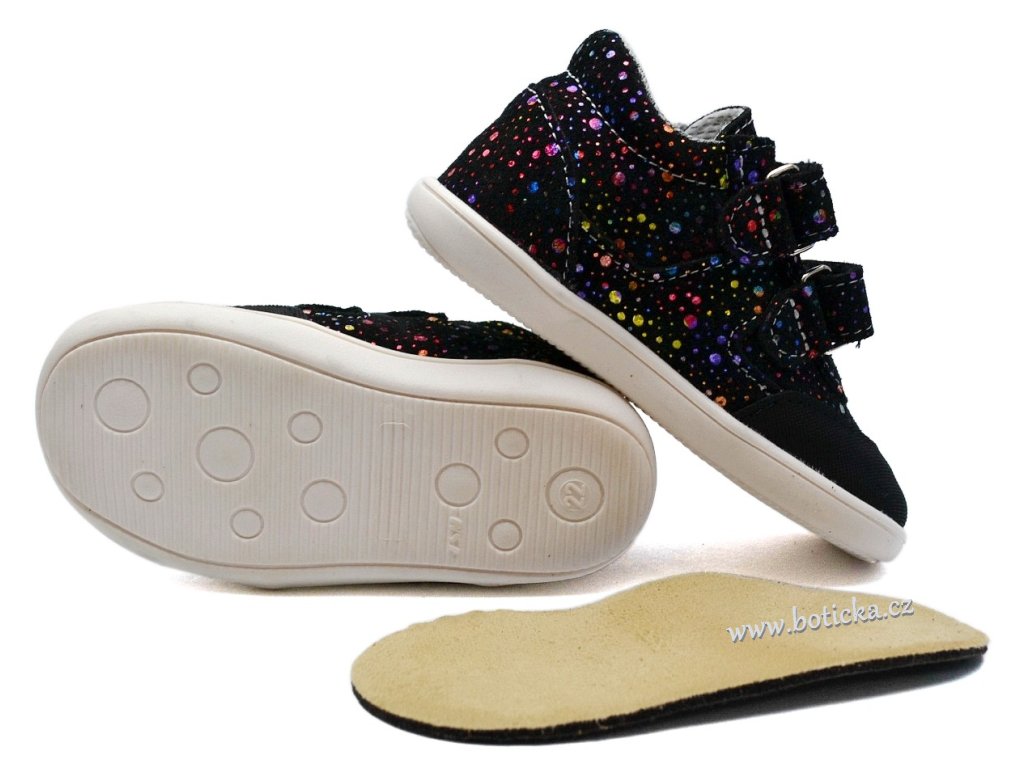 Celoroční vycházkové botičky s krásně ohebnou podešví, se zapínáním na suchý zip, vyrobené z broušené kůže s textilní podšívkou, vyvinuty pro maximální flexibilitu a lehkost obuvi, která vyhovuje současným trendům na odlehčenou a flexibilní obuv a vyhovuje zdravotním požadavkům. Výhodou je vyjímatelná textilní stélka a středně zpevněný opatek. Vyrobeno v ČR.