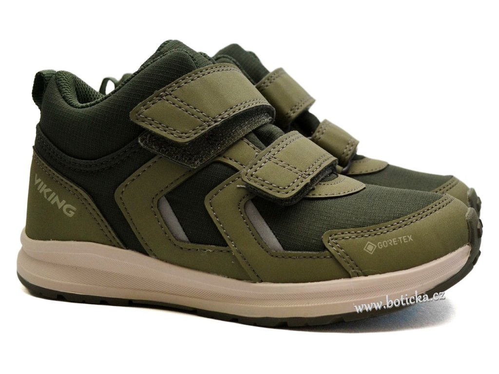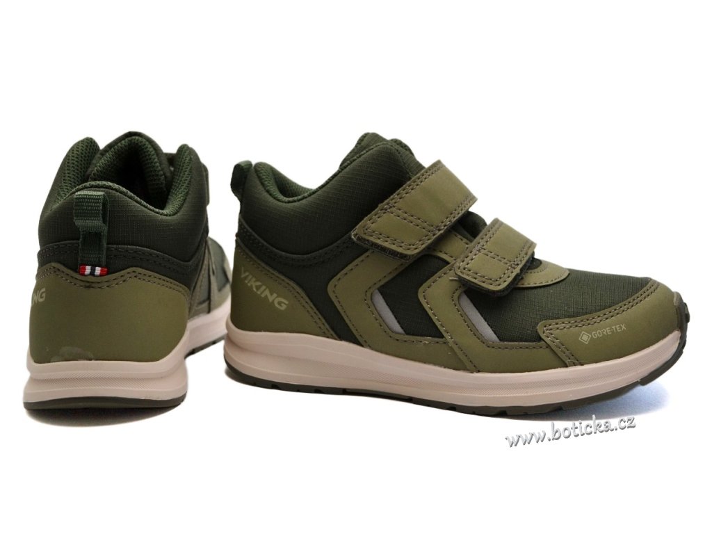 Celoroční obuv norské značky VIKING s membránou GORE-TEX je extrémně lehká, nepromokavá, prodyšná, s pevným opatkem, a kvalitní vyjímatelnou stélkou. Zapínaní na dva suché zipy, střední střih.