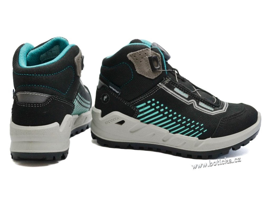 Nepromokavé boty Ricosta s membránou Sympatex. Botky mají dobře přilnavou podešev a výztuhu ve špičce i na patě. Kvalitní zapínání díky BOA systému, který krásně utáhne botky okolo chodidel a nártu. Výhodou je vyjímatelná stélka. Vhodné pro každodenní nošení od jara do podzimu, v teplotním rozmezí cca 5-19°C podle vnitřní termoregulace dítěte.