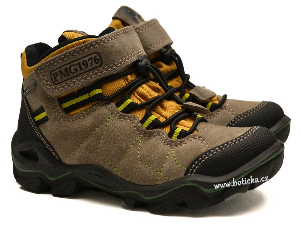 Celoroční kotníčková obuv Primigi s membránou Gore-tex. Je lehká, stoprocentně nepromokavá, s ohebnou podešví, vyjímatelnou stélkou a pevným opatkem. Zapínání na suchý zip + zdrhovadlo pro lepší stažení přes nárt. Vhodná pro všechny šířky nožiček, ale nevhodné pro vysoký nárt. Teplotně jsou vhodné do cca 5-18°C, v závislosti na individuální tělesné termoregulaci dítěte.