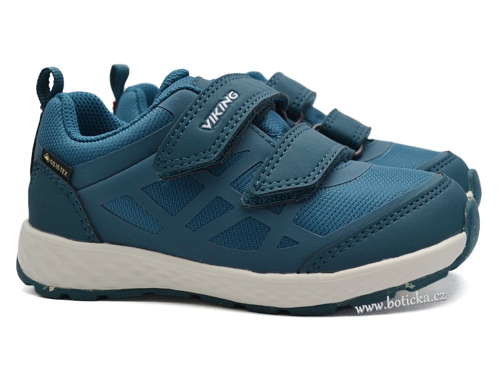 Celoroční obuv norské značky VIKING s membránou GORE-TEX je extrémně lehká, s ohebnou podešví, nepromokavá, prodyšná, s pevným opatkem, a kvalitní vyjímatelnou stélkou. Zapínaní na dva suché zipy. Nylonová síťovina je zpevněna textilem a tím podporuje stabilitu nohou. Gumová podešev poskytuje vynikající přilnavost na mokrých a kluzkých površích. Membrána GORE-TEX ® je stoprocentně nepromokavá, vyniká vysokou prodyšností a optimální tepelnou vodivostí, dětské nohy nebudou přehřáté. Vhodné pro každodenní nošení od jara do podzimu, v teplotním rozmezí cca 12-24°C podle vnitřní termoregulace dítěte.
