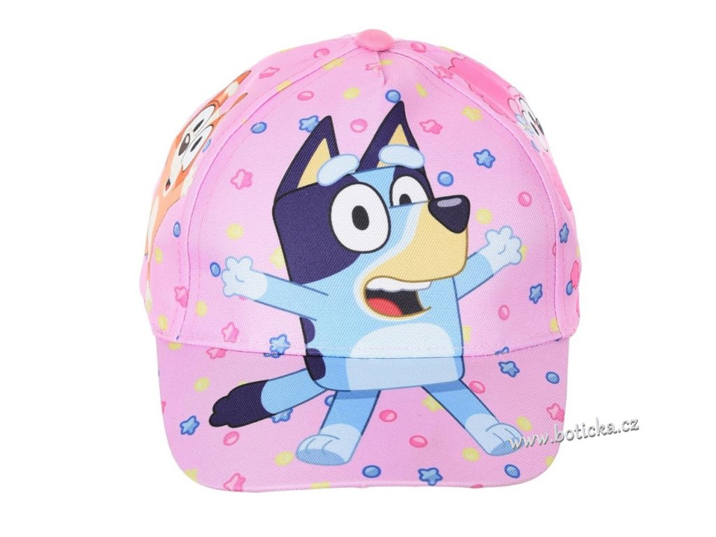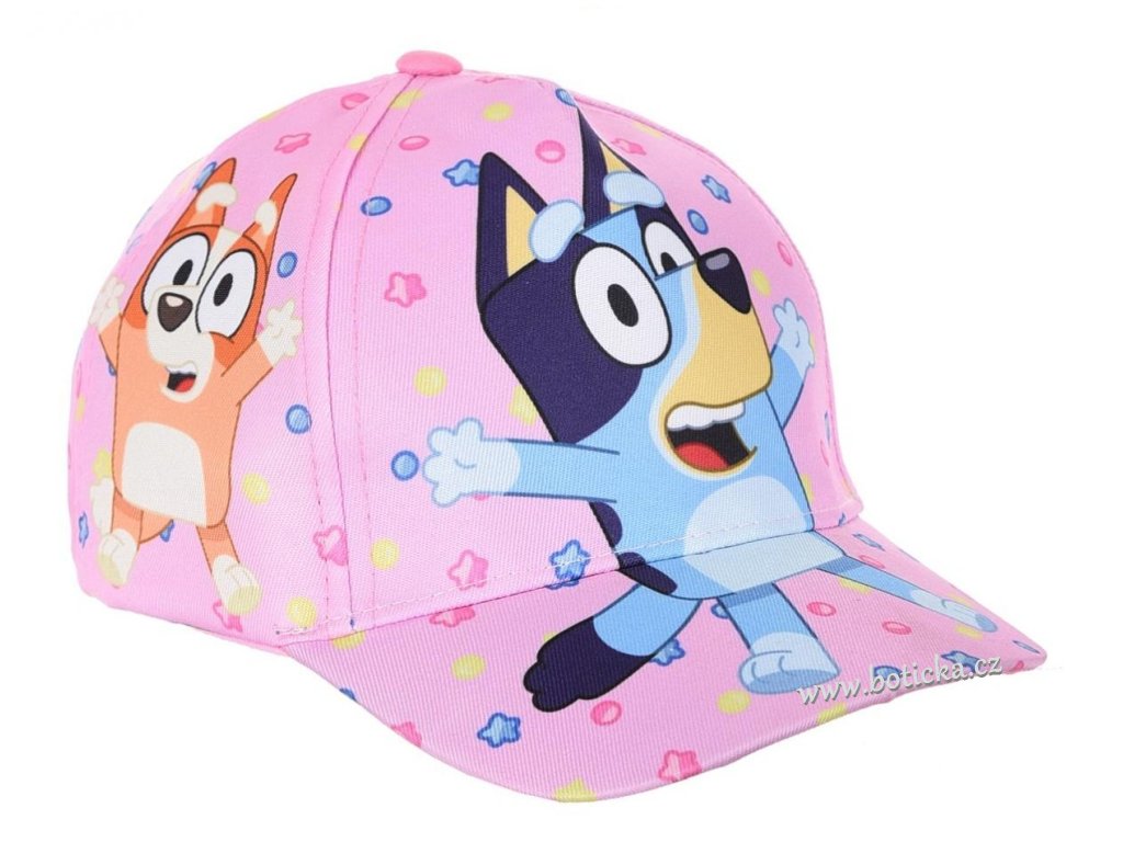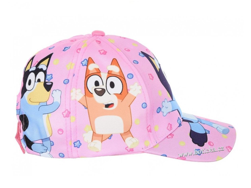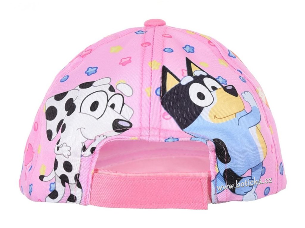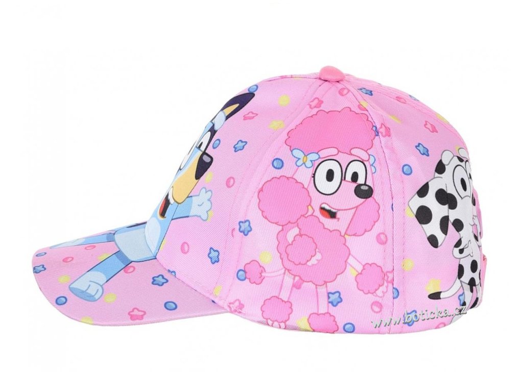 Dívčí kšiltovka s motivem Bluey. Vzadu možnost utažení na suchý zip. Údržba: prát ručně, nedávat do pračky, nesušit v sušičce !!!